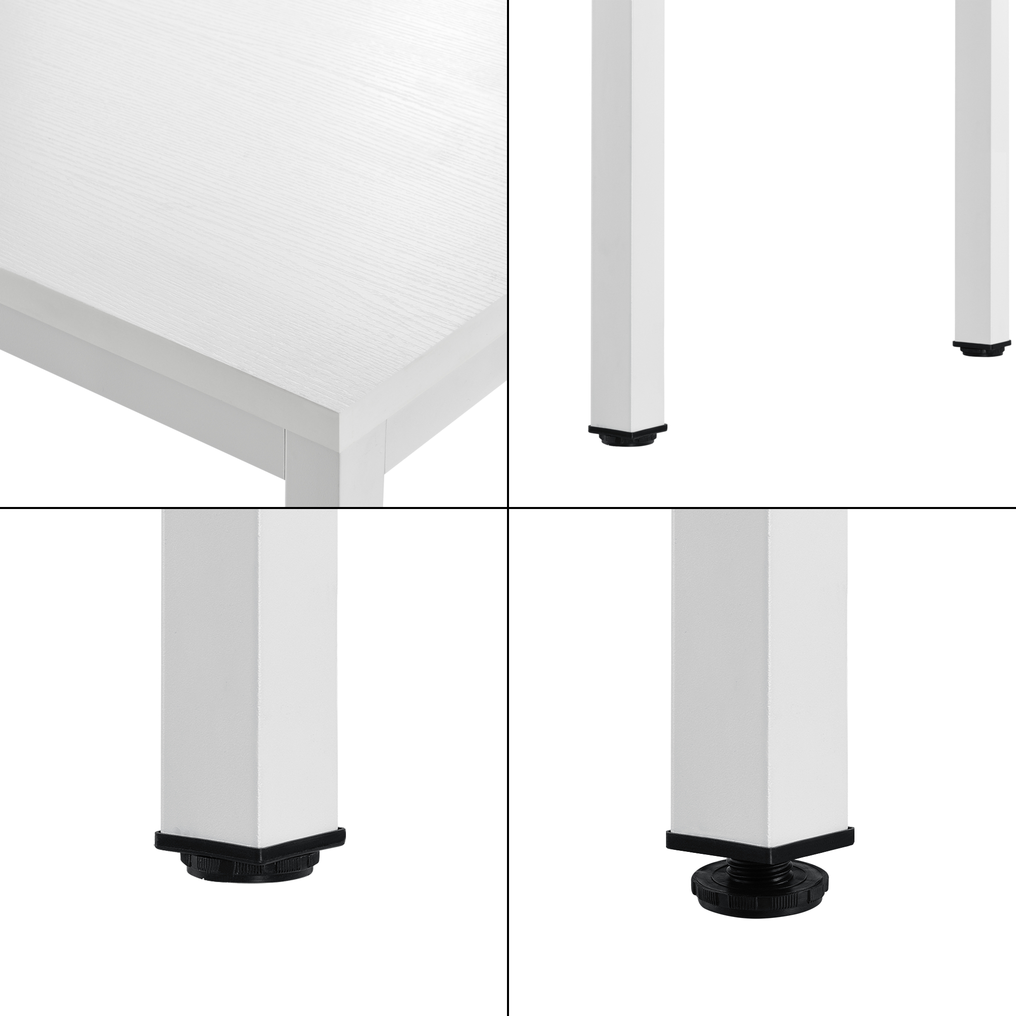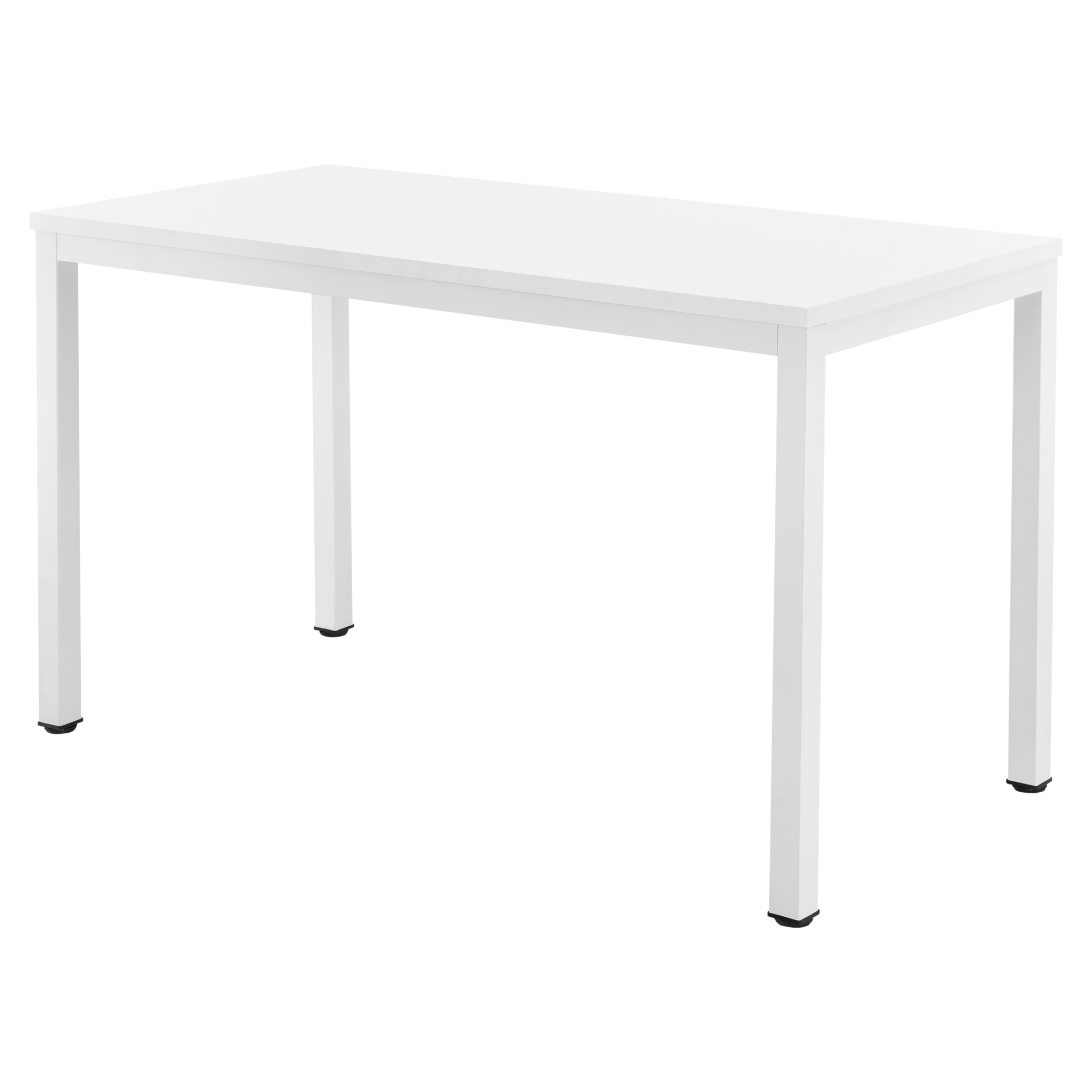 Blatul rezistent, realizat din placă aglomerată cu finisaj melaminat, este ușor de curățat și oferă o suprafață practică pentru utilizare zilnică. Cadrul metalic vopsit în câmp electrostatic contribuie la stabilitate și durabilitate, iar forma clasică dreptunghiulară îl face ușor de integrat în diverse stiluri de amenajare. Acest birou alb este o soluție versatilă pentru cei care caută funcționalitate și un aspect aerisit.
