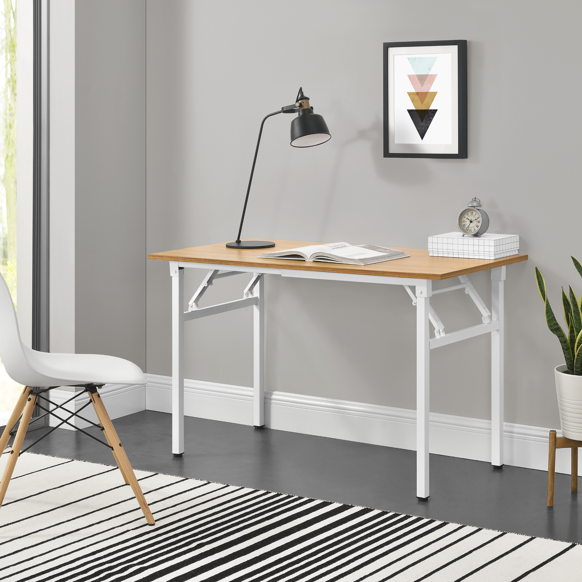 Biroul pliabil Alta 120x60 cm este alegerea potrivită pentru un spațiu de lucru modern, ordonat și eficient. Potrivit pentru acasă sau pentru birou, acest birou pliabil oferă o suprafață practică de lucru, un design simplu și o structură care economisește spațiu atunci când nu este folosit.
