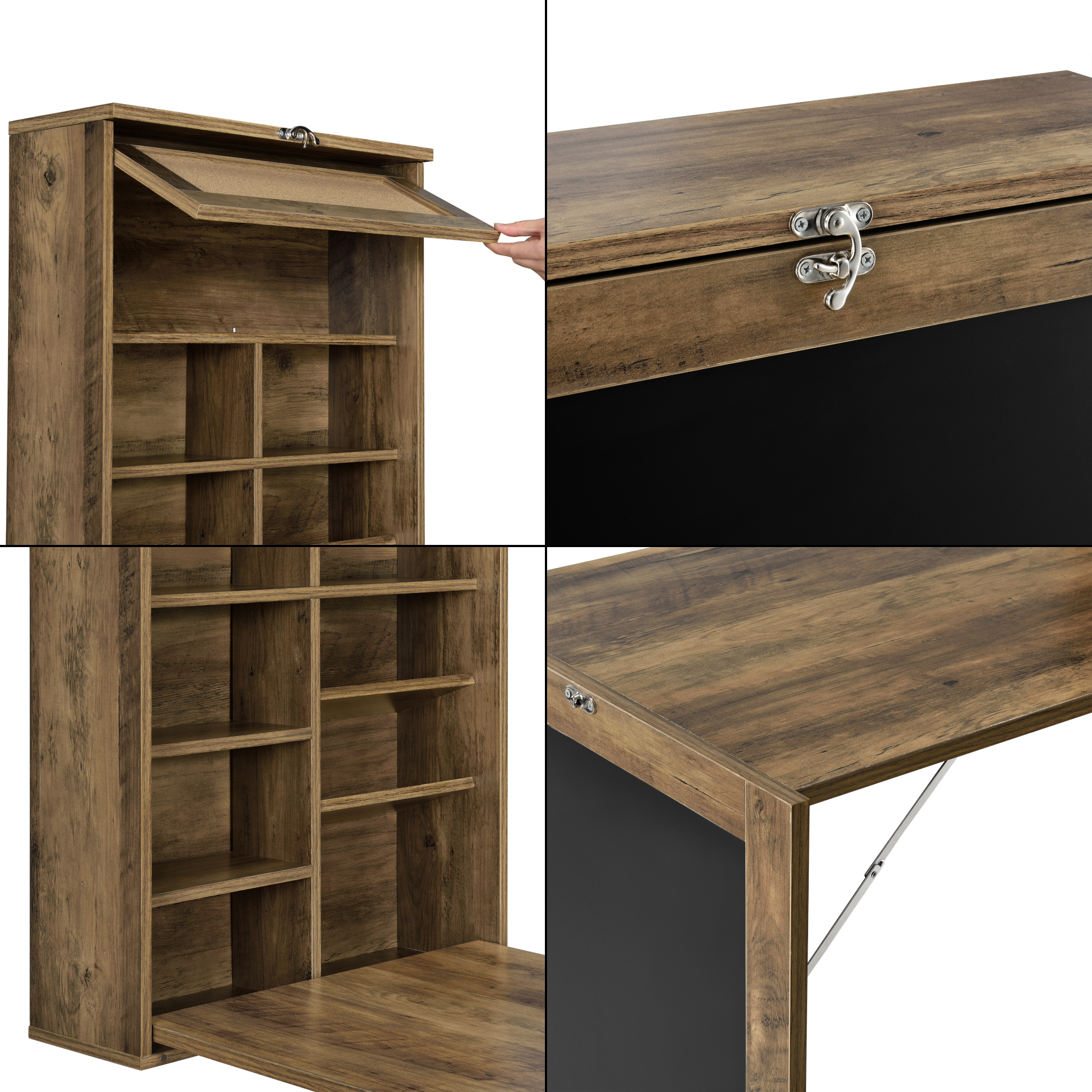 Birou pliabil de perete cu rafturi, tablă și panou plută, maro