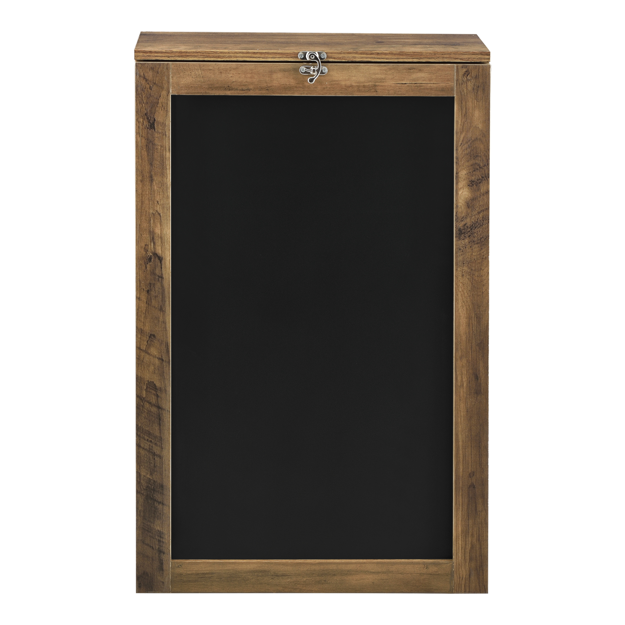 Modelul este prevăzut cu rafturi pentru depozitare, un panou din plută pentru notițe și o tablă neagră integrată, fiind perfect pentru organizarea eficientă a accesoriilor, documentelor sau mesajelor importante. Finisajul în nuanță de lemn oferă un aspect cald și versatil, ușor de integrat în decoruri moderne, scandinave sau clasice.