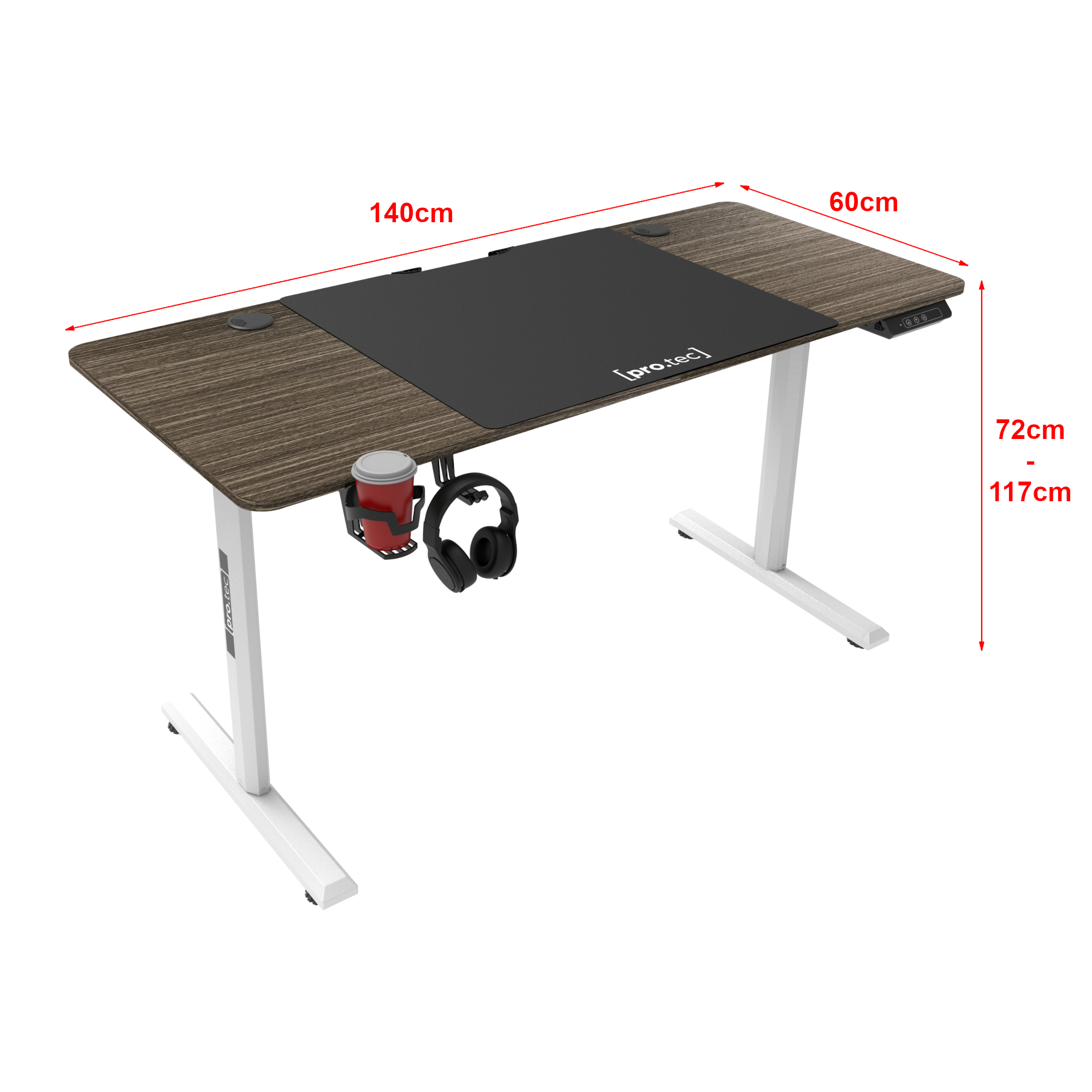 Birou reglabil electric Hayward 140x60 cm, maro inchis, cadru alb