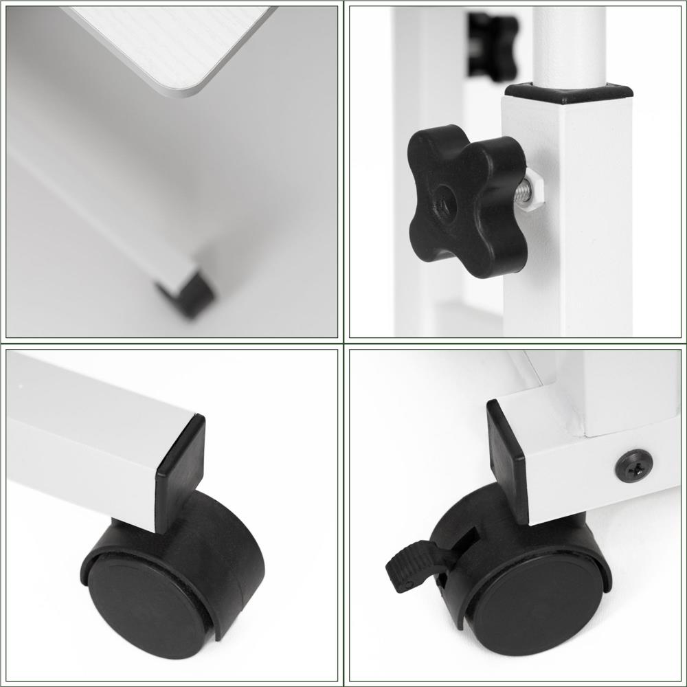 Birou reglabil pe inaltime cu rafturi laterale si roti, 80x40 cm, alb