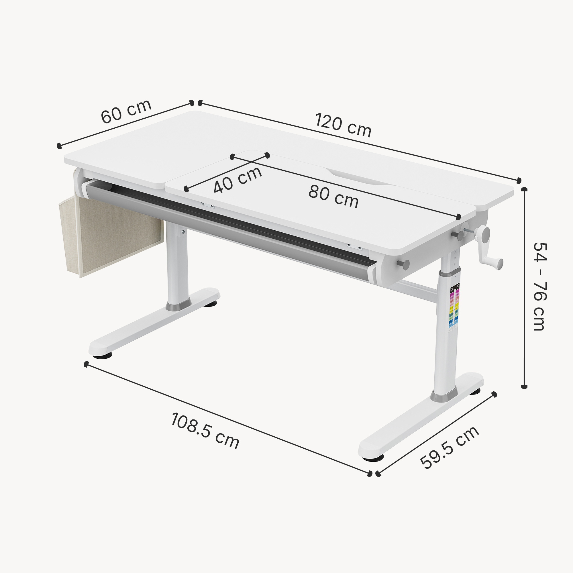 Datorită mecanismului de reglare cu manivelă detașabilă, înălțimea poate fi ajustată ușor între 54 și 76 cm, astfel încât biroul să crească odată cu copilul. În plus, zona inclinabilă a blatului permite reglarea continuă între 0 și 50°, oferind un plus de confort și ergonomie pentru activitățile zilnice. Este un birou ergonomic pentru copii gândit pentru concentrare, ordine și utilizare pe termen lung.