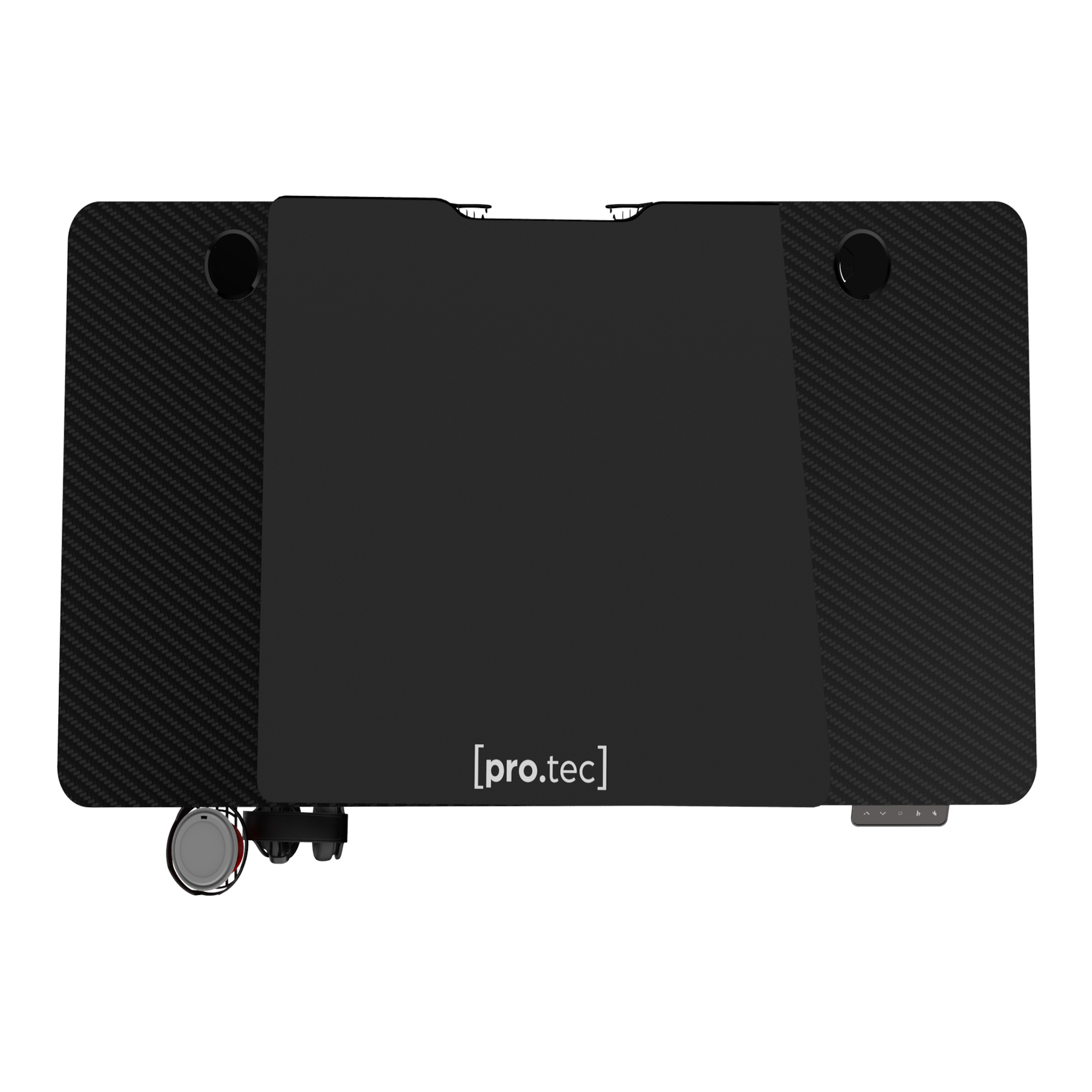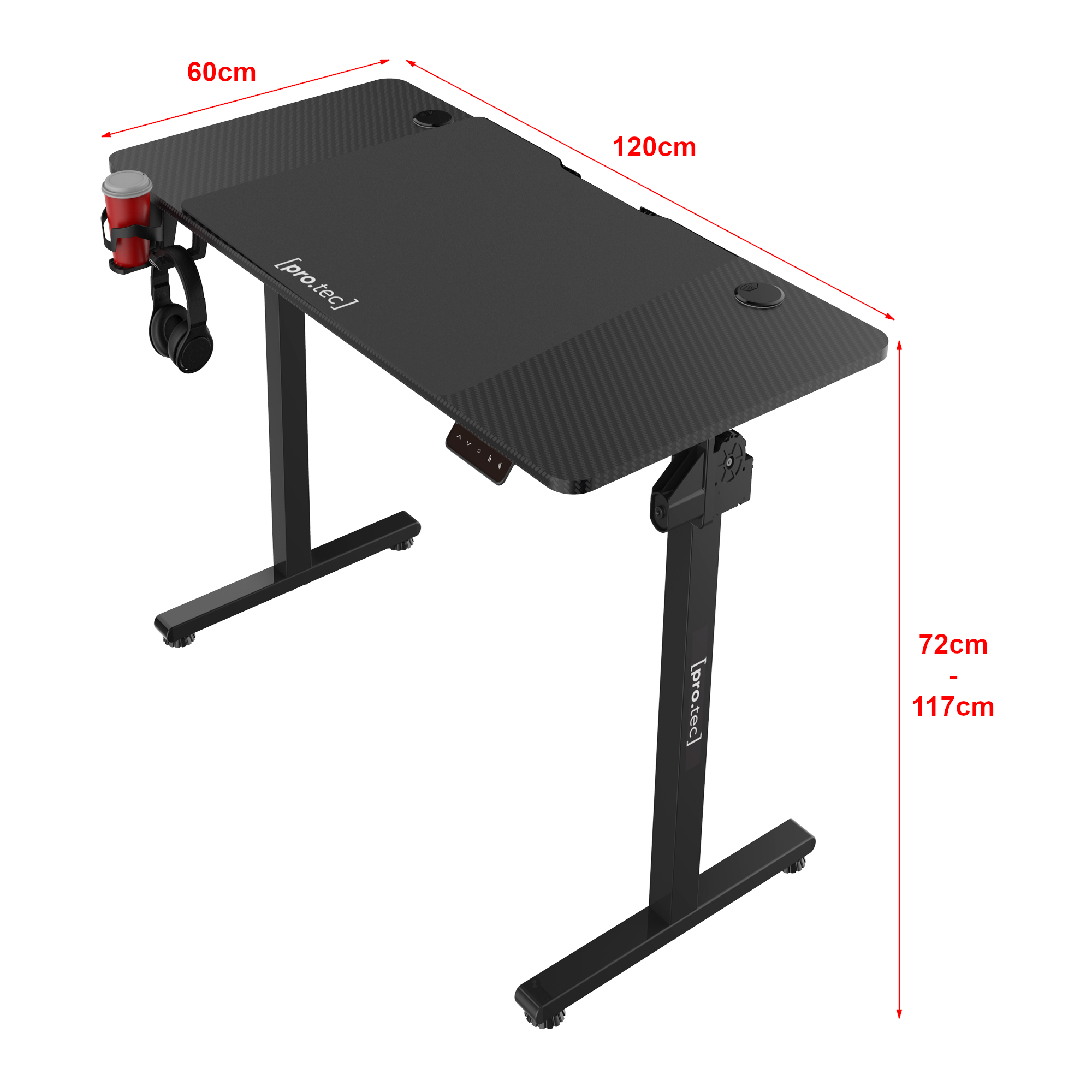 Designul negru cu aspect carbon ofera un look elegant si contemporan, iar accesoriile incluse, precum suportul pentru pahar, carligul pentru casti si mousepad-ul XXL detasabil, transforma acest birou electric intr-o solutie functionala si versatila pentru lucru, studiu sau gaming usor.