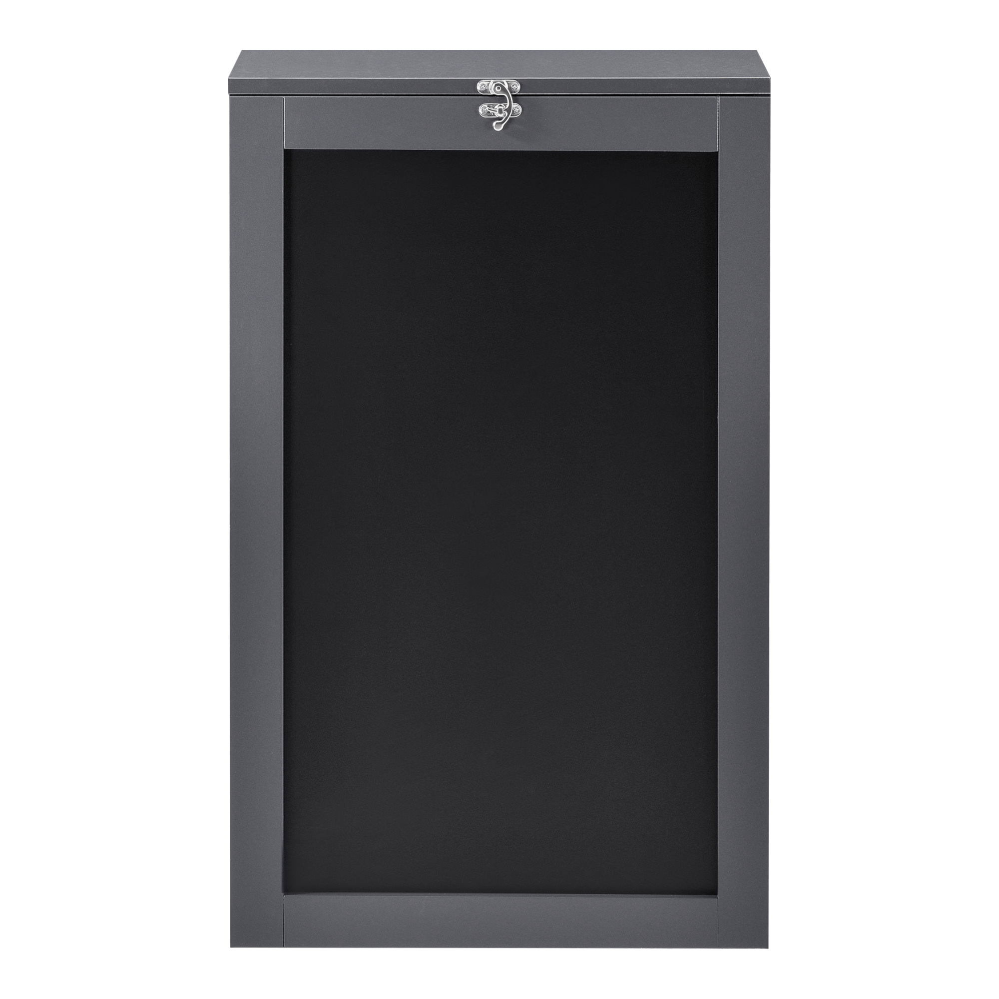 Modelul este prevăzut cu rafturi de depozitare, o tablă frontală pentru notițe și o panou tip plută pentru mesaje sau fotografii, fiind perfect pentru organizarea eficientă a obiectelor de zi cu zi. Designul în nuanță gri închis oferă un aspect elegant și contemporan.