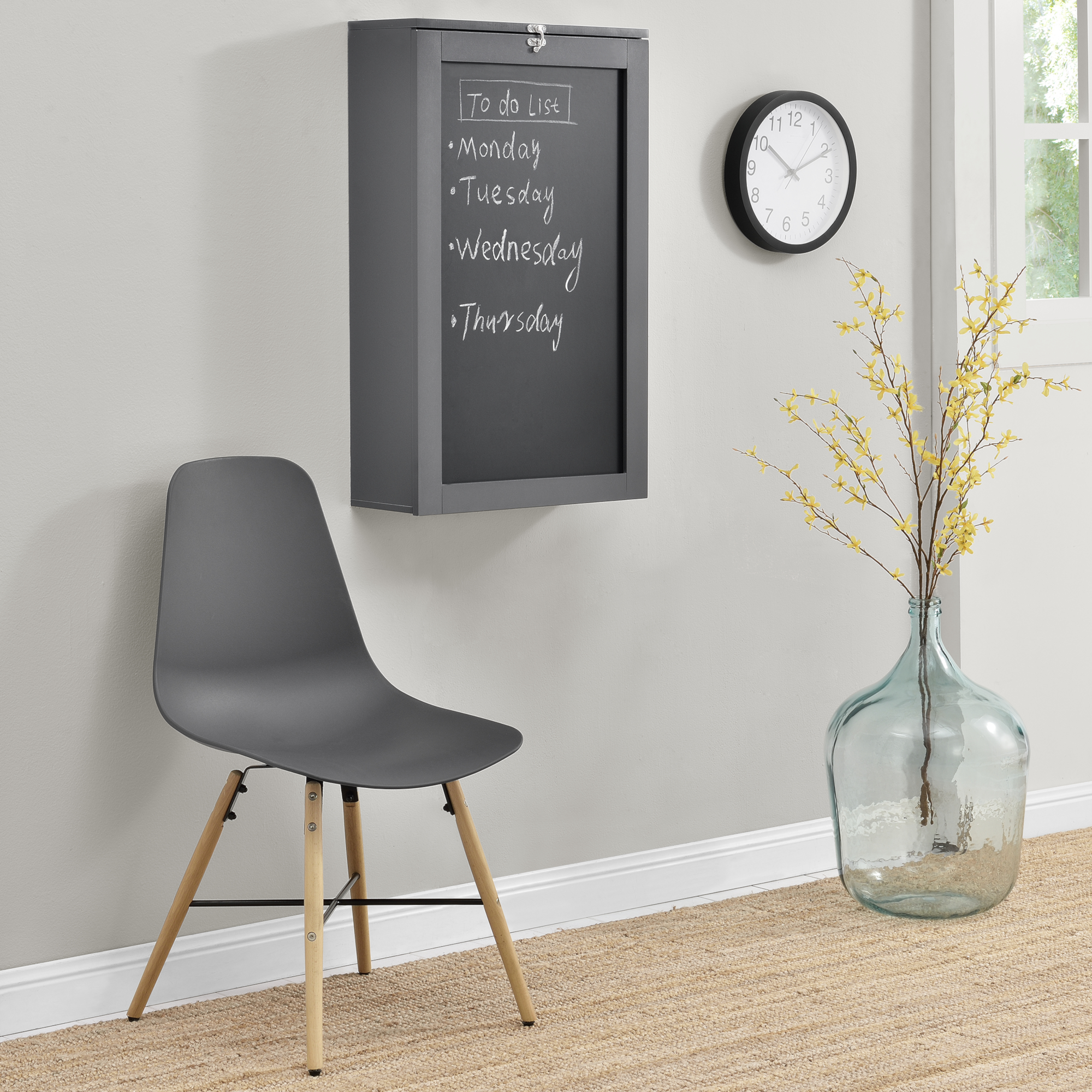 Acest birou rabatabil de perete este potrivit pentru lucru de acasă, teme, scris, organizarea documentelor sau utilizare ocazională în bucătărie. Se montează pe perete și se deschide rapid ori de câte ori ai nevoie de o suprafață practică de lucru.