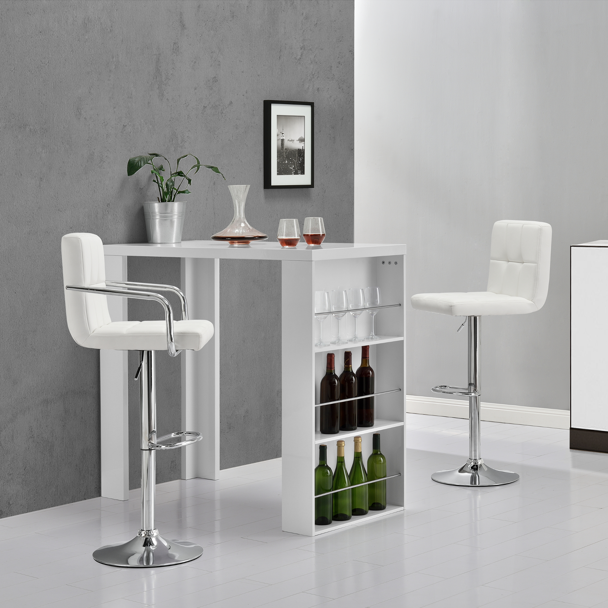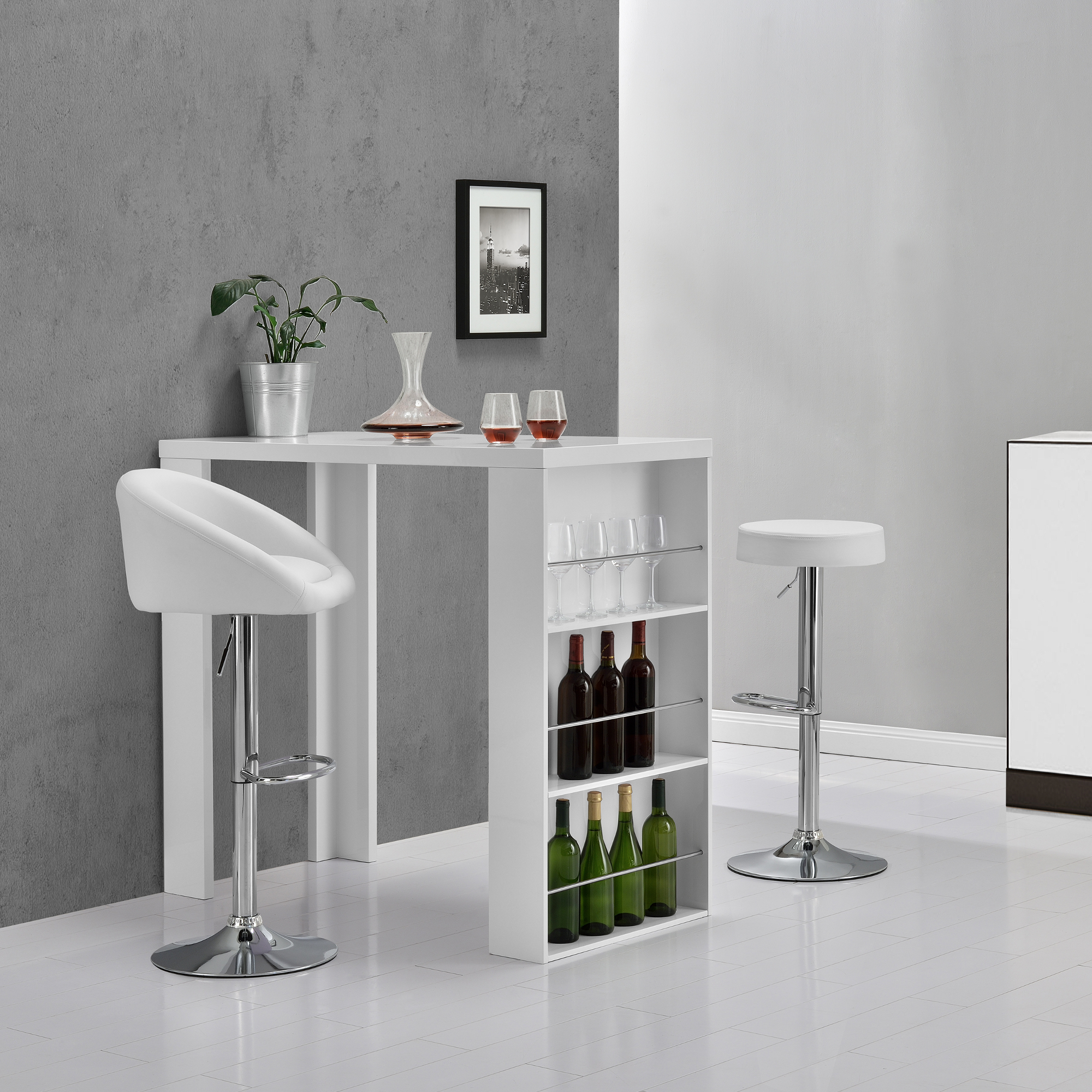 Blat bar Bartha cu rafturi incorporate alb [en.casa] HausGarden Leisure