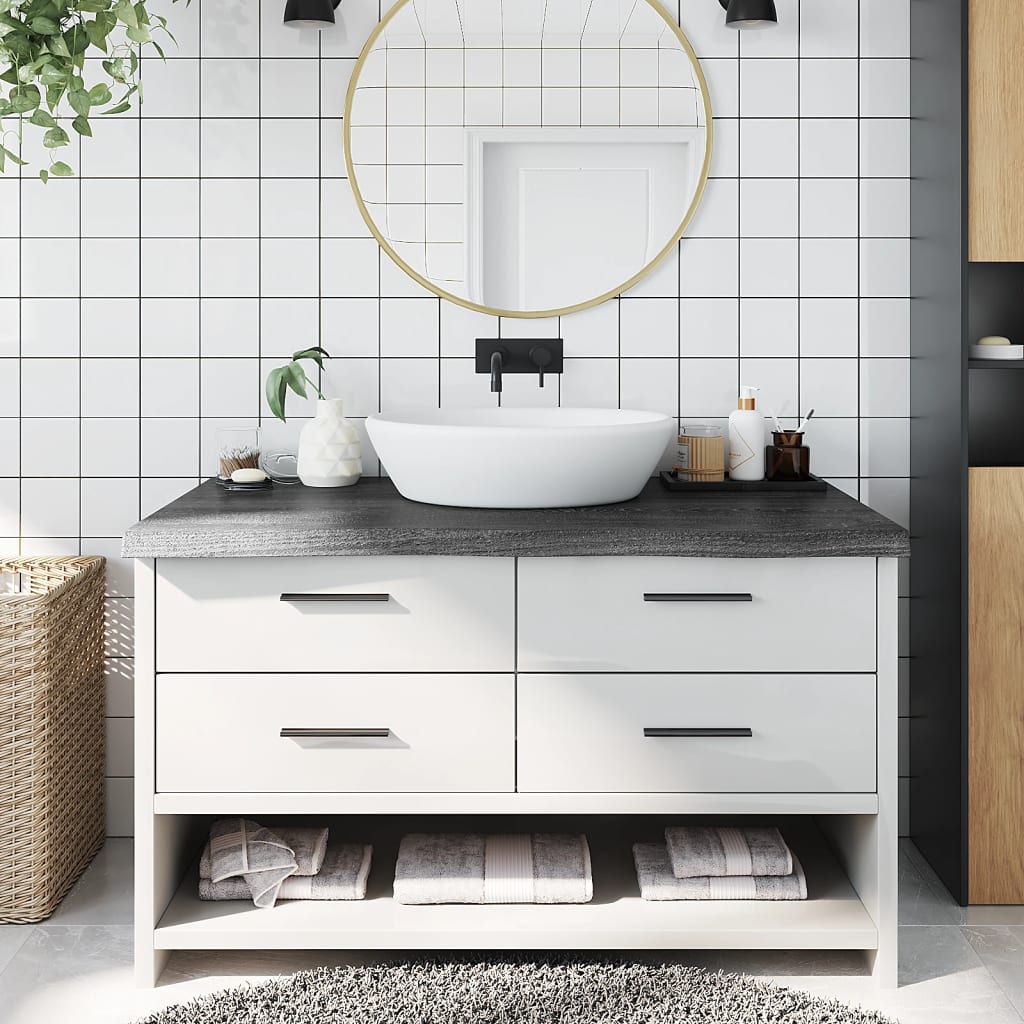 Blat de baie, gri închis, 100x50x(2-6) cm, lemn masiv tratat GartenMobel Dekor