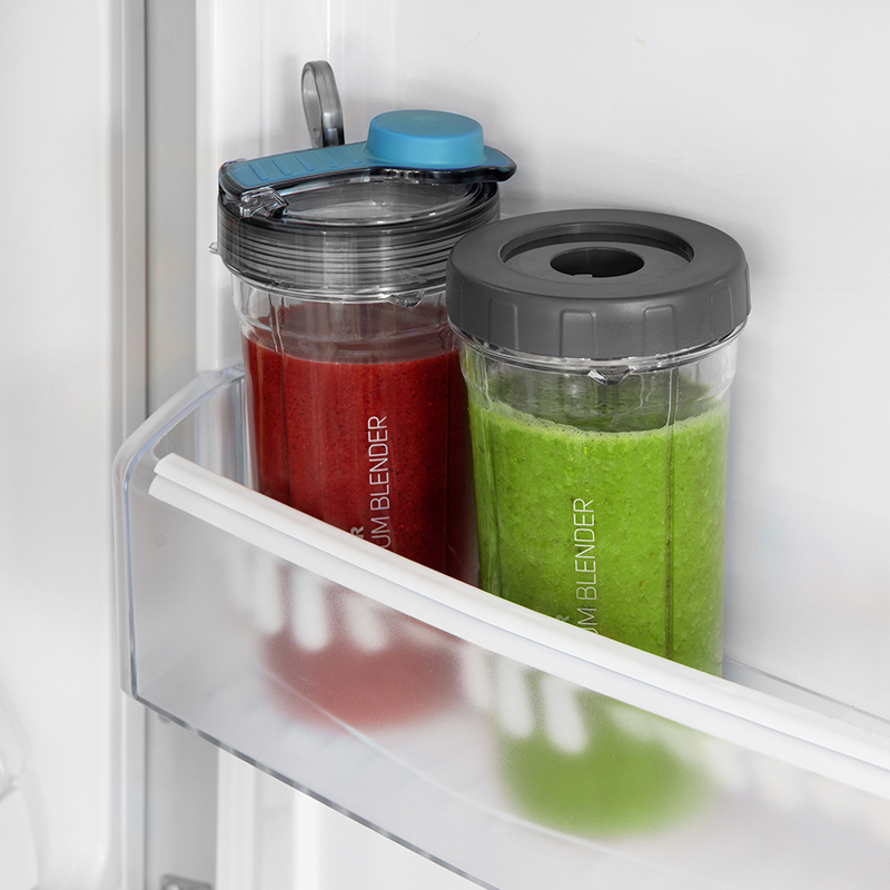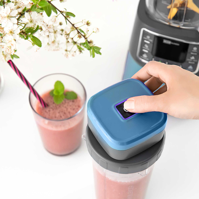 Are o unitate speciată de vidat care, atunci când este conectată, aspiră aerul din recipient și apoi mixează ingredientele. Vidul poate păstra alimentele proaspete timp de câteva ore! Nu există oxidare și pierdere de vitamine sau minerale, iar băutura își păstrează gustul chiar și după câteva ore.