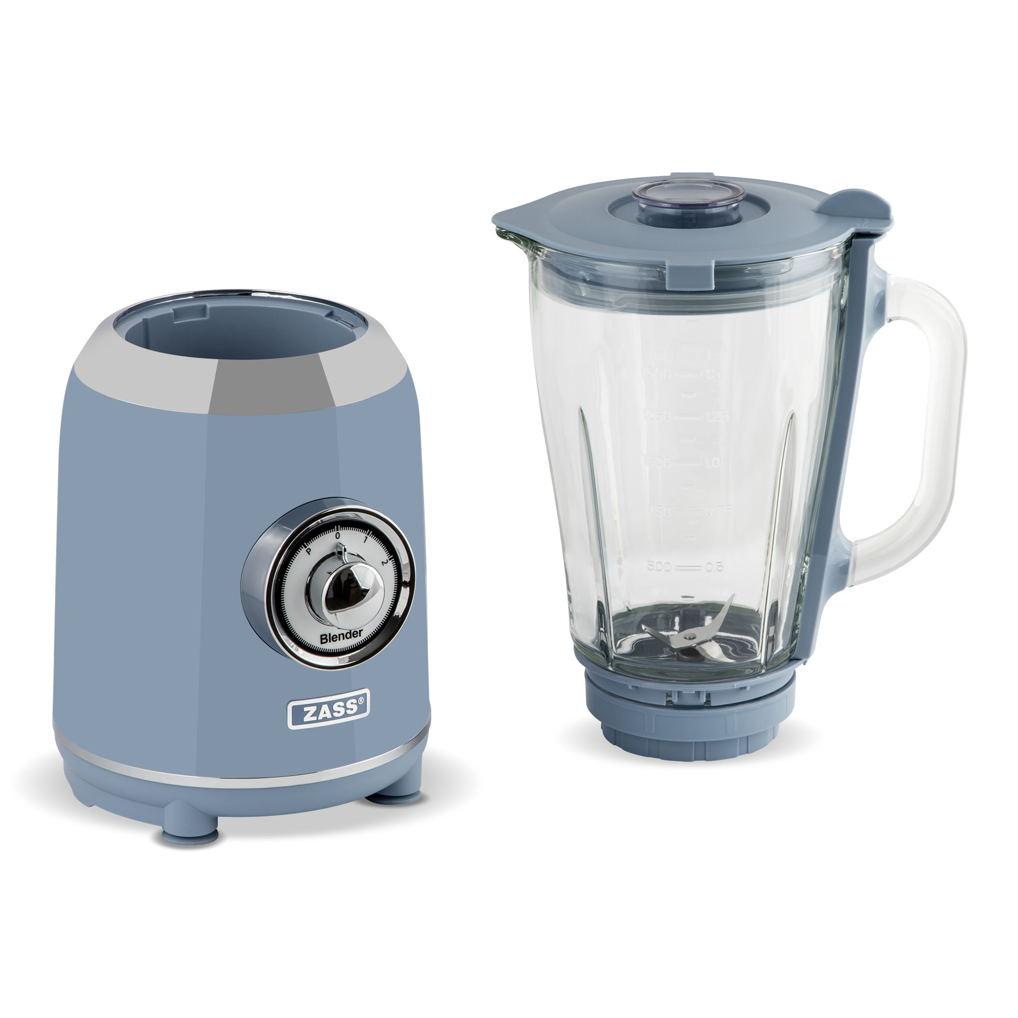 Blender de masă ZASS ZSB 15 Faded Denim, 800W, 1,5L, cană din sticlă