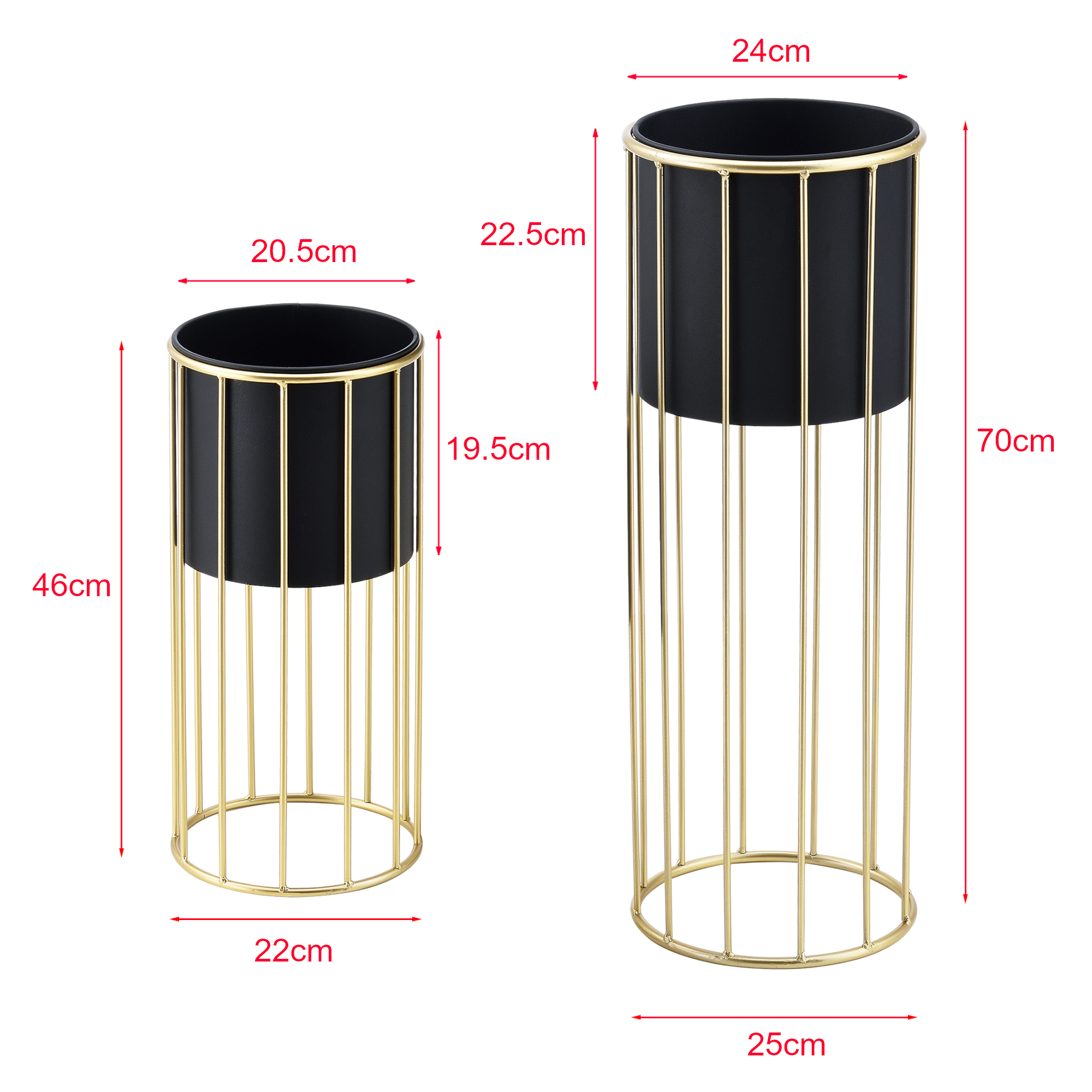 Blumentopfständer Mortsel 2er-Set Metall Schwarz-Goldfarben [en.casa]