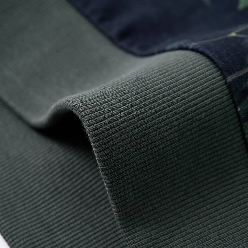 Acest bluzon pentru copii are mâneci lungi, decolteu rotund și margini cu model din elastic împletit la manșete, în jurul gâtului și în partea inferioară. Acest hanorac prezintă o maimuță înconjurată de frunze. Bluza pentru copii este confecționată din 92% bumbac și 8% poliester, pentru moliciune și confort. Căptușeala moale din fleece oferă un plus de căldură pentru acest bluzon de copii.