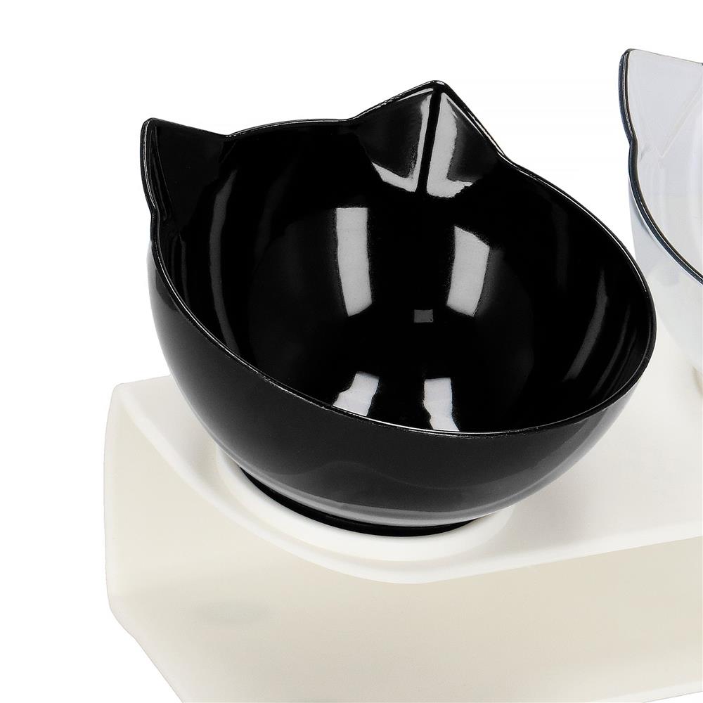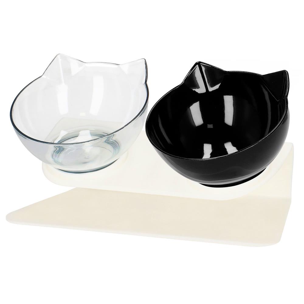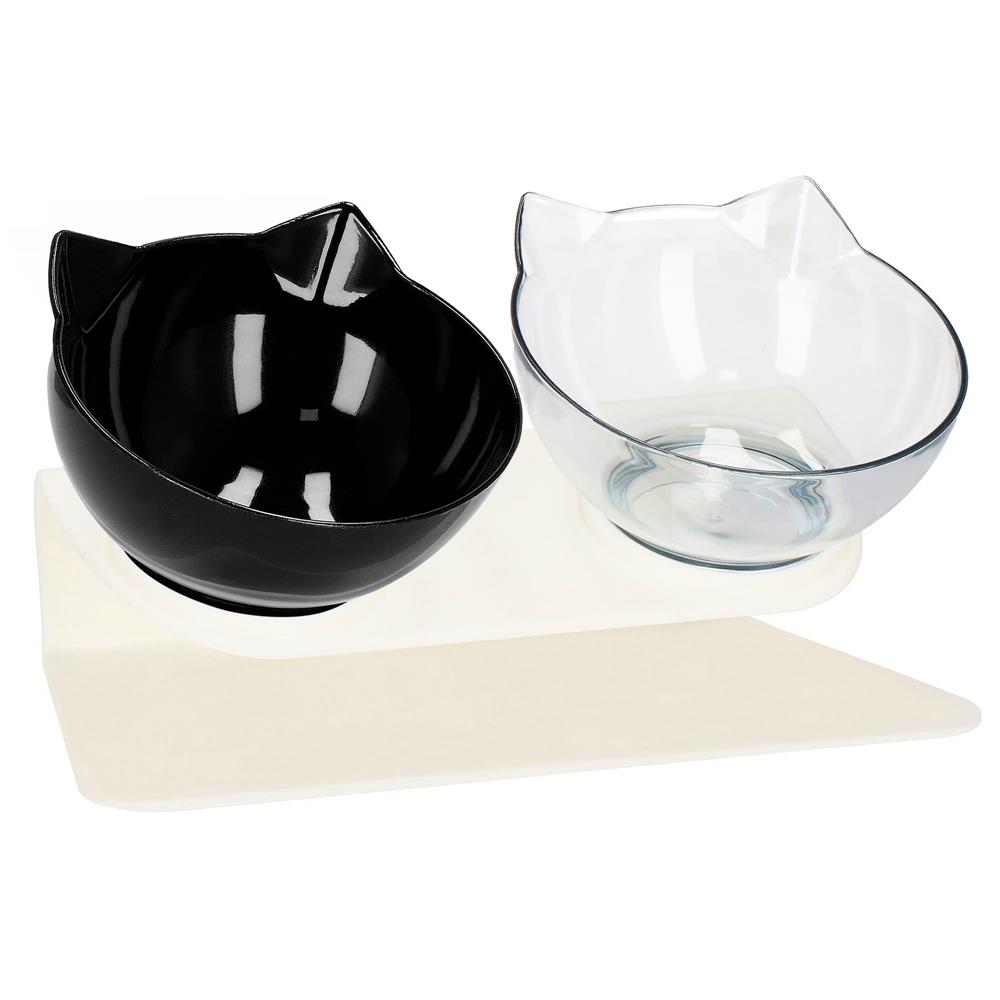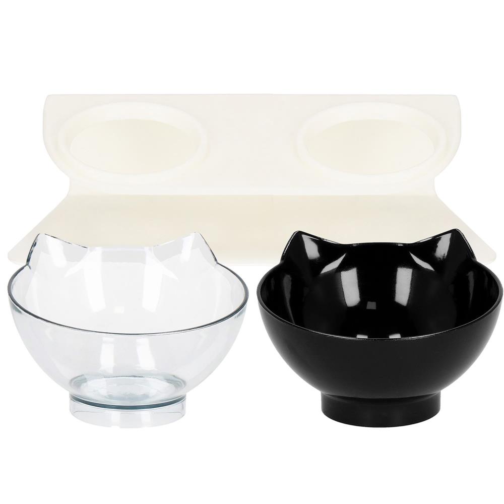 Bol ortopedic dublu pentru hrana si apa pisici, inclinare de 15 grade, baza antiderapanta, transparent si negru Household NewTrend