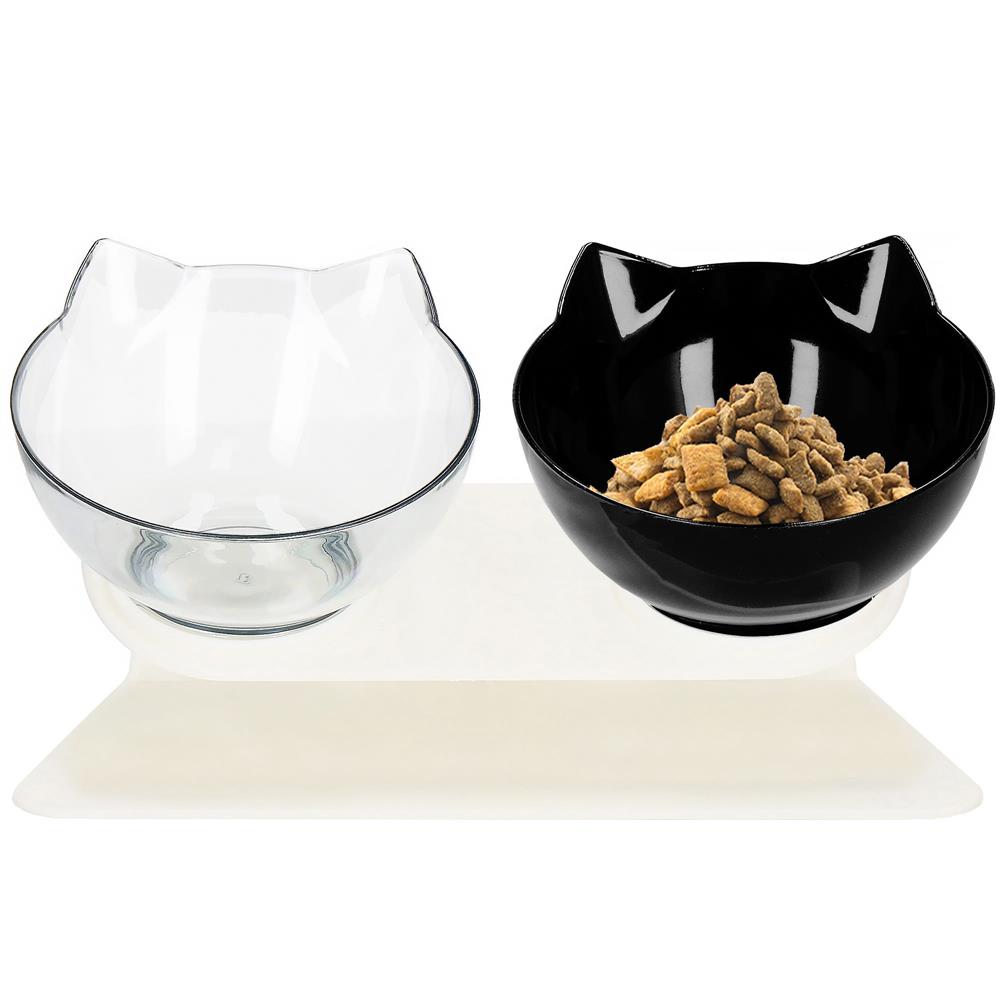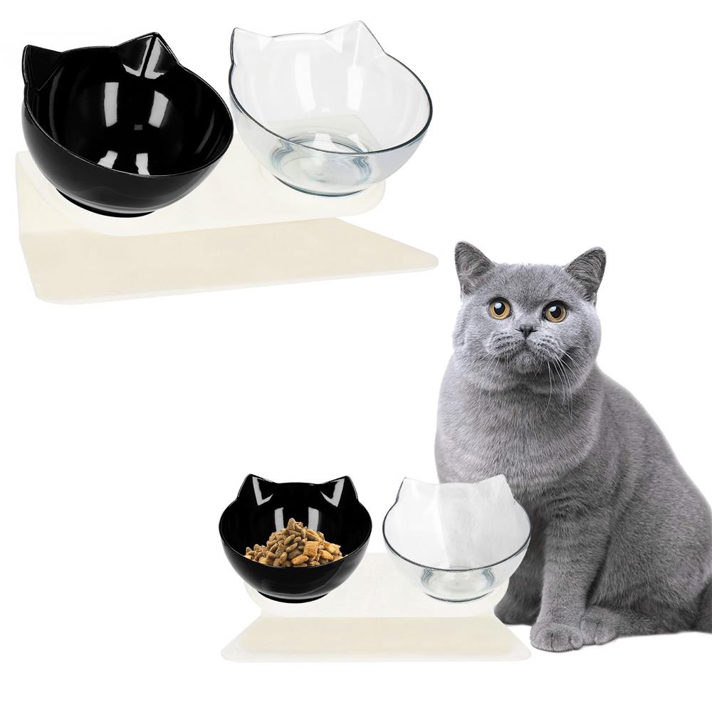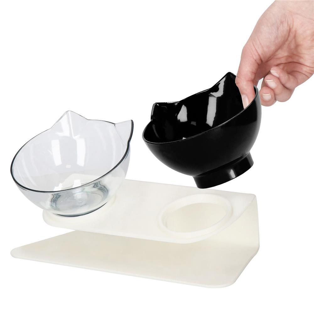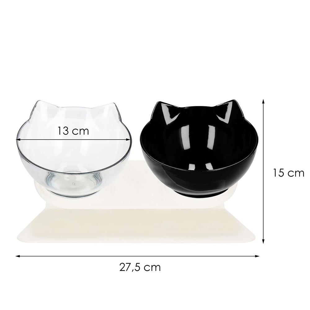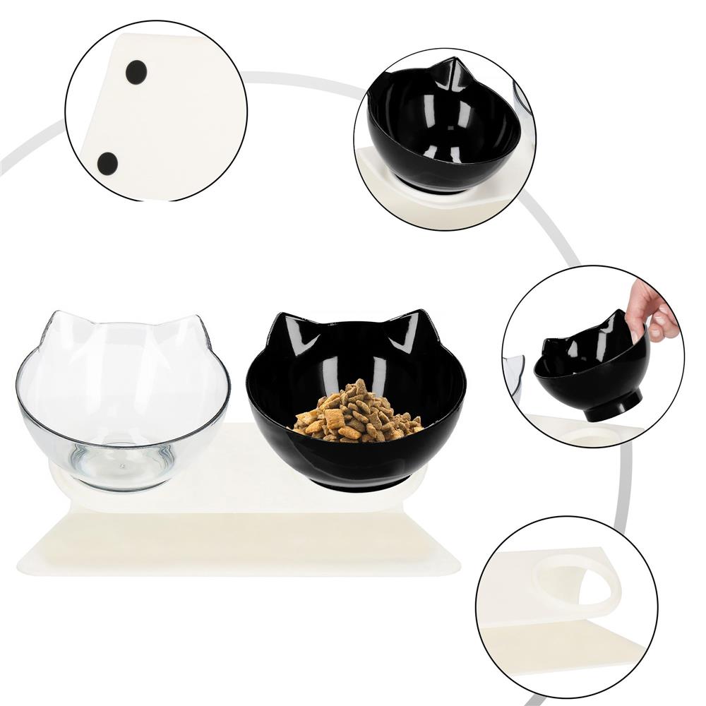 Bol ortopedic dublu pentru hrana si apa pisici, inclinare de 15 grade, baza antiderapanta, transparent si negru Household NewTrend