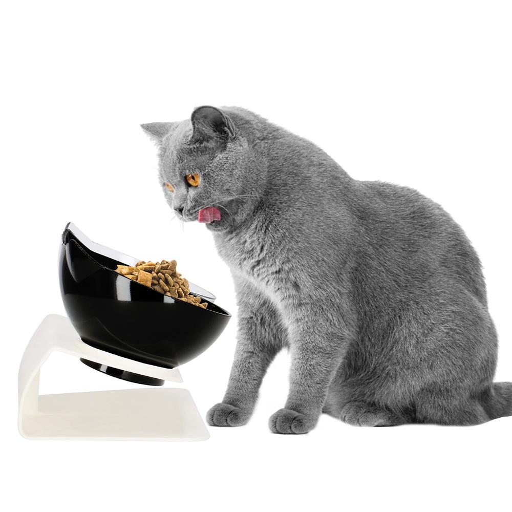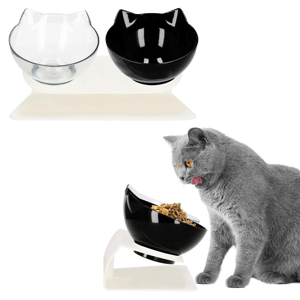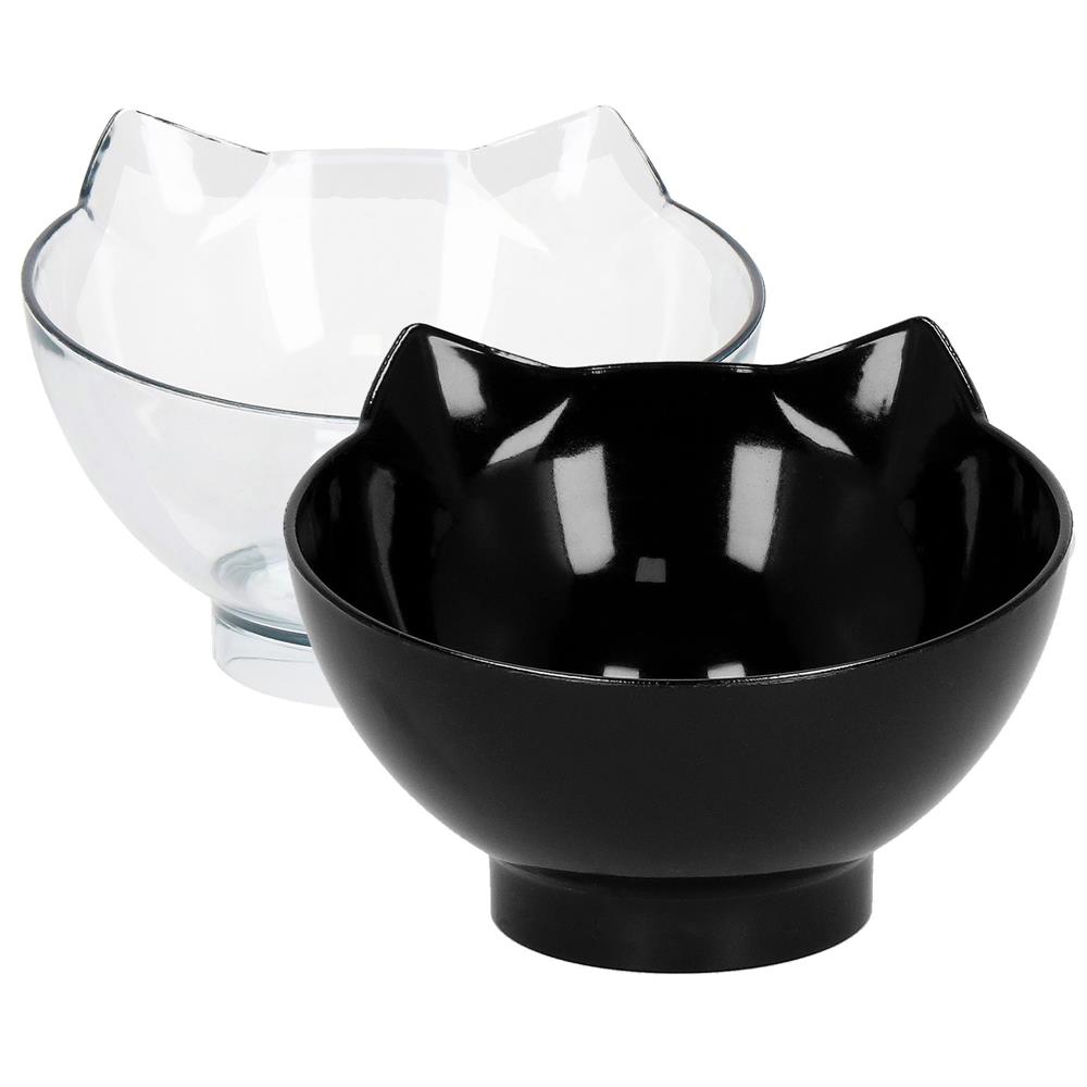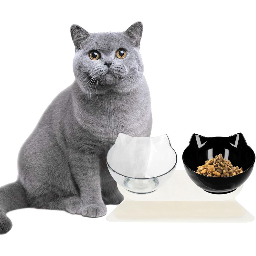 Bol ortopedic dublu pentru hrana si apa pisici, inclinare de 15 grade, baza antiderapanta, transparent si negru Household NewTrend