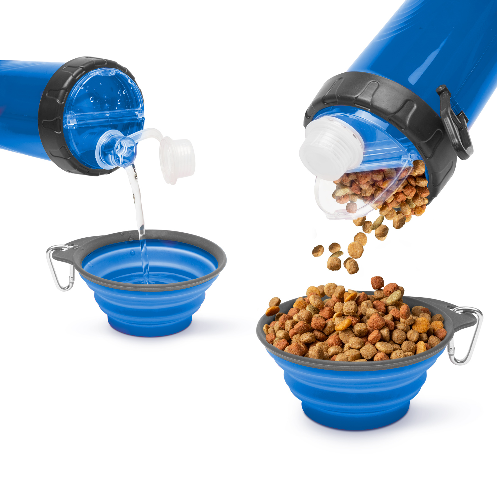 Setul include un recipient cu două compartimente, care permite proprietarului să-și potolească setea, dar poate fi folosit și pentru depozitarea alimentelor uscate!