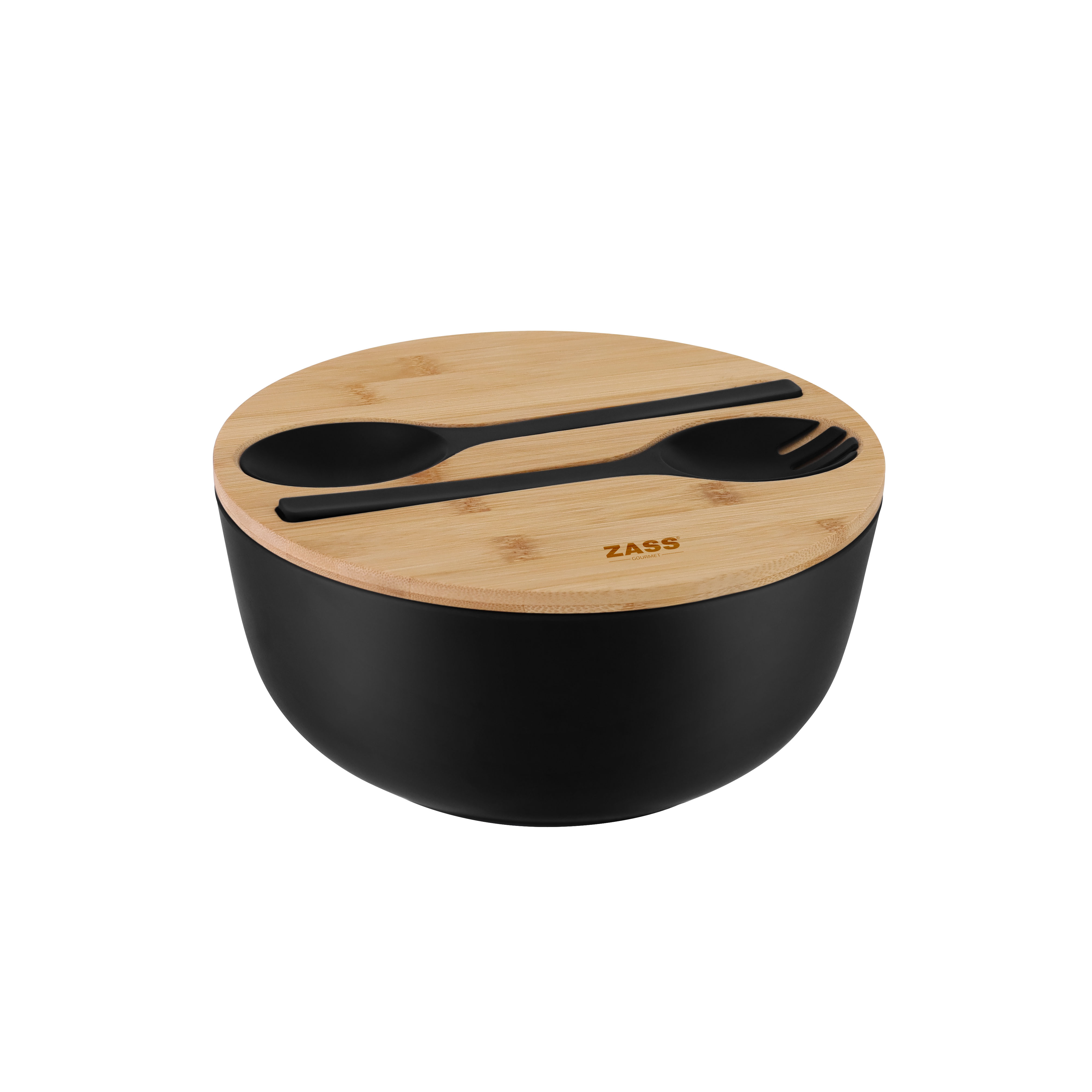Bol pentru salată din fibră de bambus 25 cm cu capac, negru, ZASS