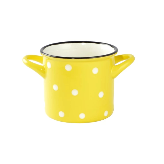 Transformă fiecare masă într-un moment cozy cu acest bol pentru supă din ceramică, tip cană, cu toartă practică. Are capacitate 385 ml, fiind ideal pentru supă, ciorbă, cremă de legume, noodles sau gustări calde. Designul cu buline îl face ușor de integrat în bucătăria ta și plăcut de folosit zi de zi.