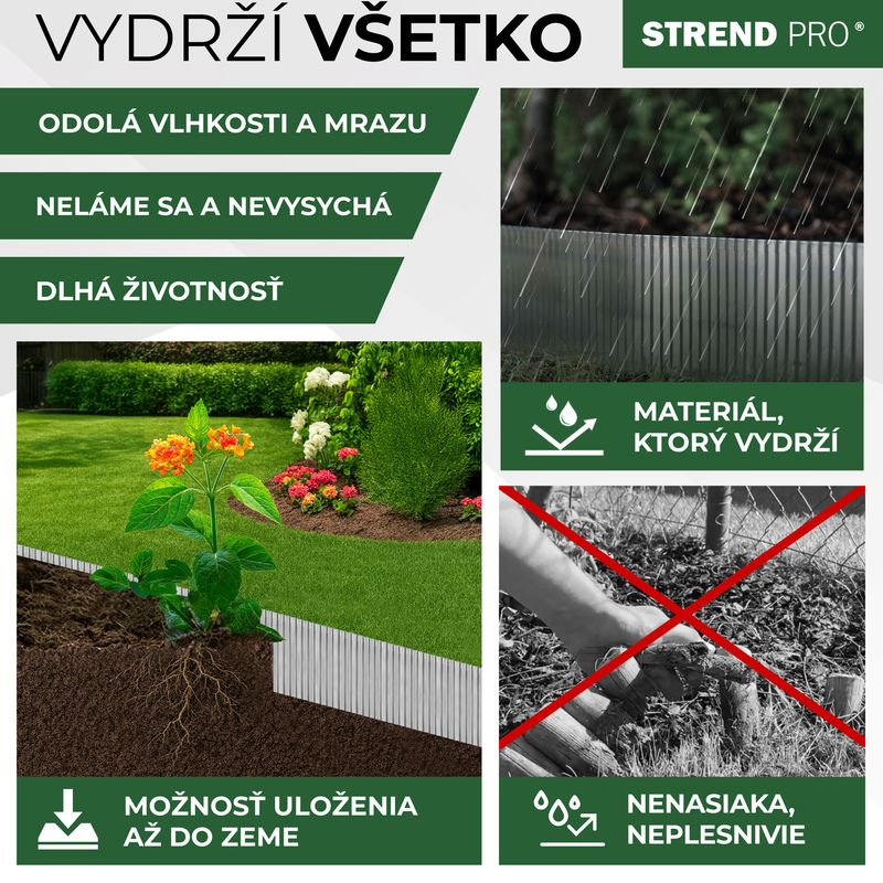 Bordură metalică pentru gazon Strend Pro Garden 150 mm x 6 m