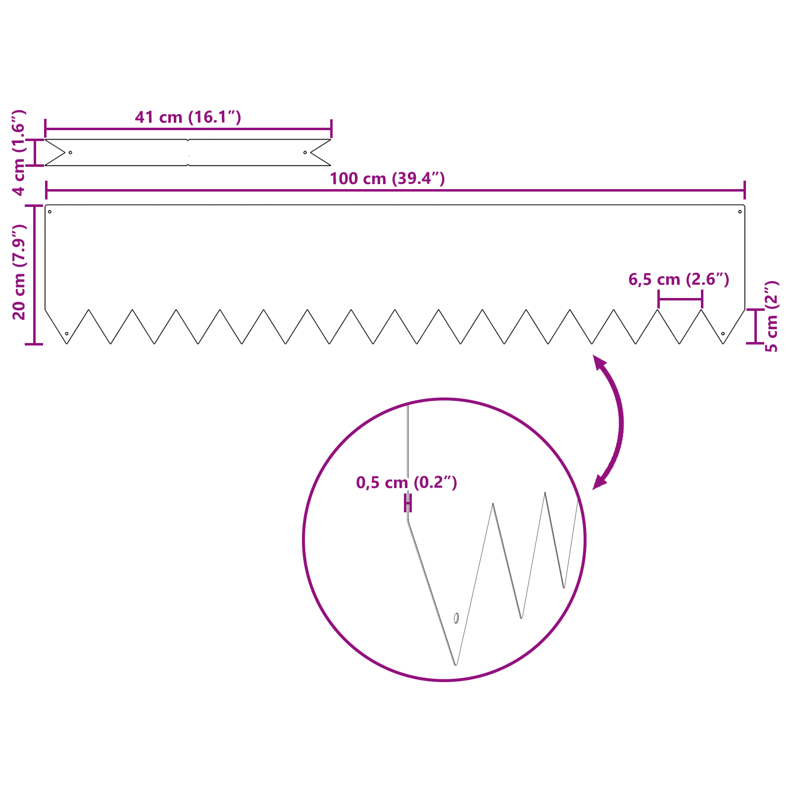 Bordura asta de grădină combină aspectul cu funcționalitatea. Stabilește limite clare și adaugă farmec oricărei zone exterioare. Perfectă pentru grădini mari și mici, designul ingenios zigzag nu doar că își face treaba, dar adaugă și un pic de stil peisajului.