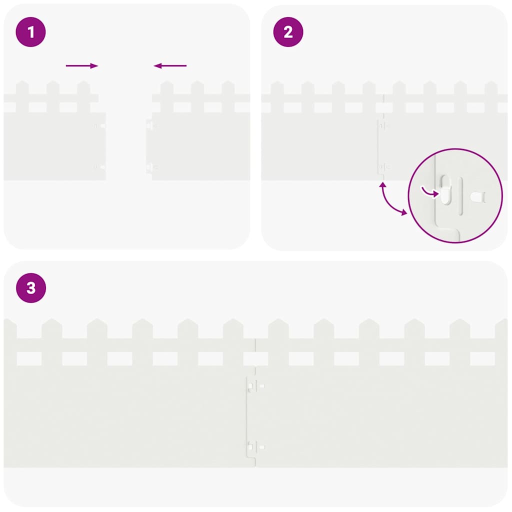 Borduri pentru gazon 30 pcs Alb 103 x 0,05 x 22 cm Oțel GartenMobel Dekor