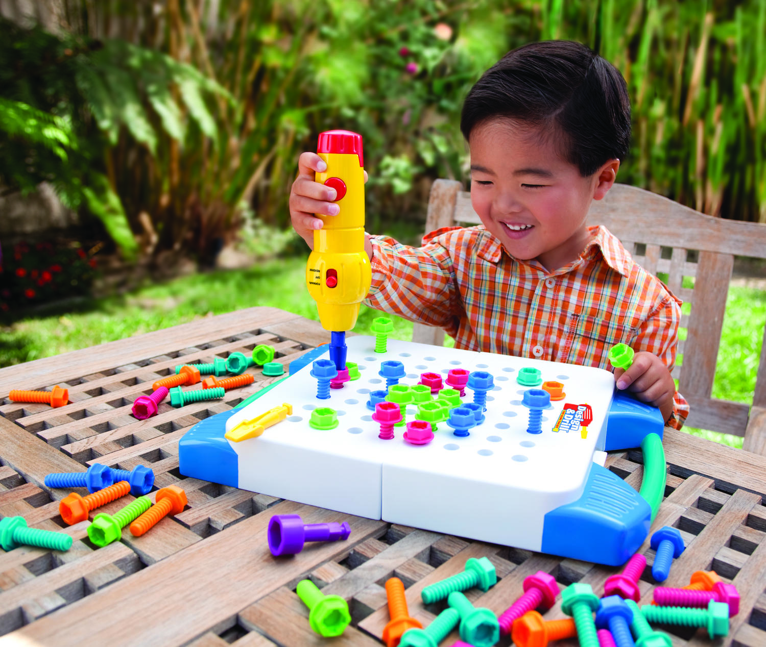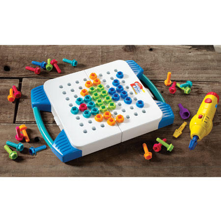Copilul fixează șuruburile colorate pe tabla de lucru și folosește șurubelnița electrică sau capetele de schimb pentru a crea modele variate. Setul poate fi folosit atât pentru joc liber, cât și pentru activități ghidate, alături de un adult.