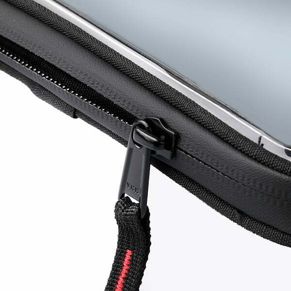 • Pentru o atingere mai buna a smartphone-ului cu o folie activa, exista un compartiment din plasa cu deschidere laterala larga (permite introducerea cu usurinta a telefonului) inchis cu curea velcro, pentru un control perfect la atingere