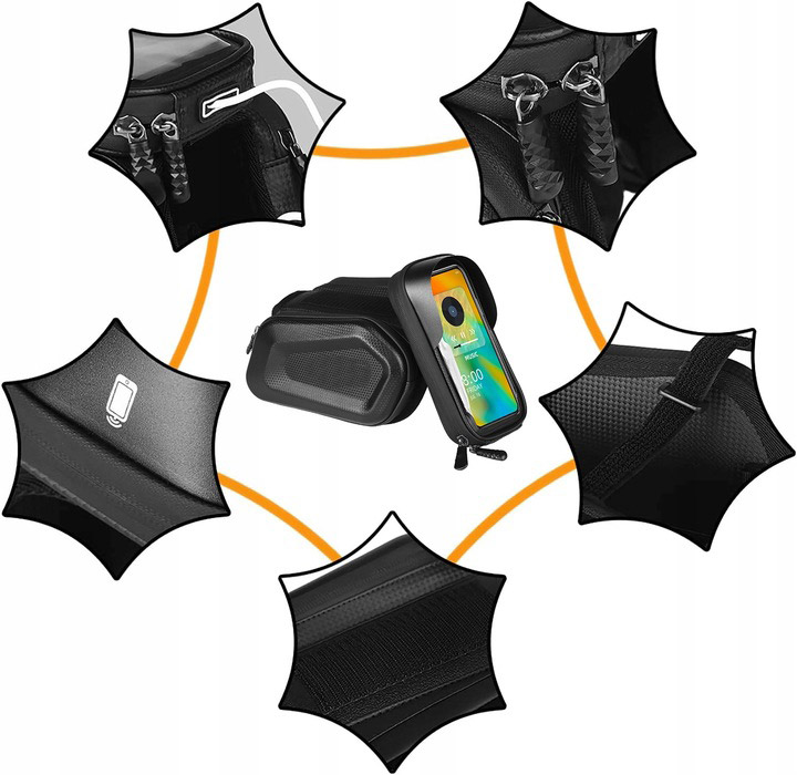Utilizare: fixeaza borseta pe bara bicicletei, introdu telefonul in compartimentul superior si depoziteaza accesoriile necesare in compartimentul principal. Este potrivita pentru naveta, ciclism urban, plimbari recreative si trasee mai lungi.