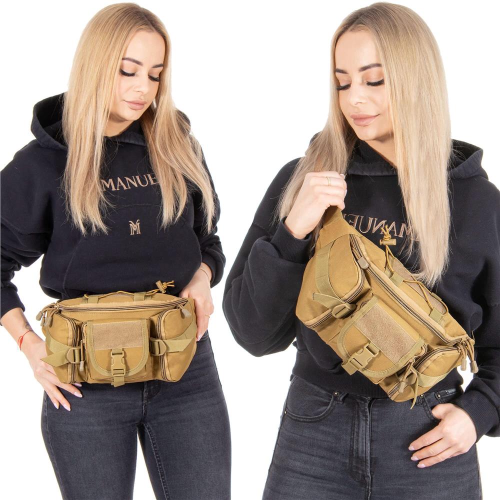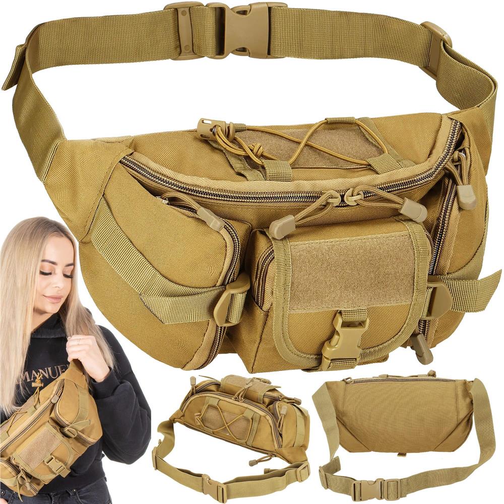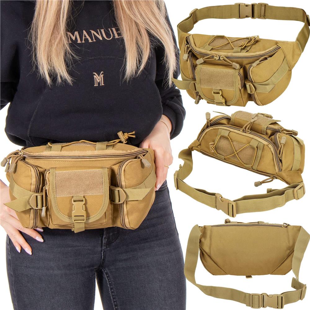 Borseta tactica impermeabila unisex pentru brau sau umar, kaki, 37x19 cm