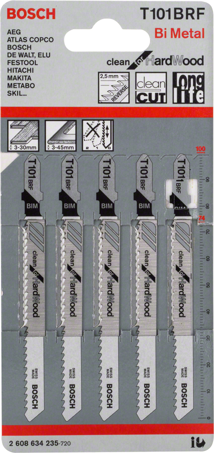 Bosch Set 5 panze ferastrau vertical T 101 BRF Clean for Hard Wood, 100mm ProAdvanced PowerfulTools