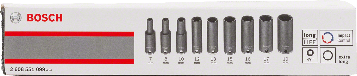 Bosch Set 9 chei tubulare 3/8" adanci 7, 8, 10, 12, 13, 15, 16, 17, 19mm ProAdvanced PowerfulTools