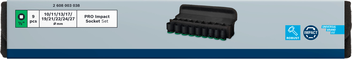 Bosch Set 9 tubulare impact, 1/2", 10-27mm ProAdvanced PowerfulTools