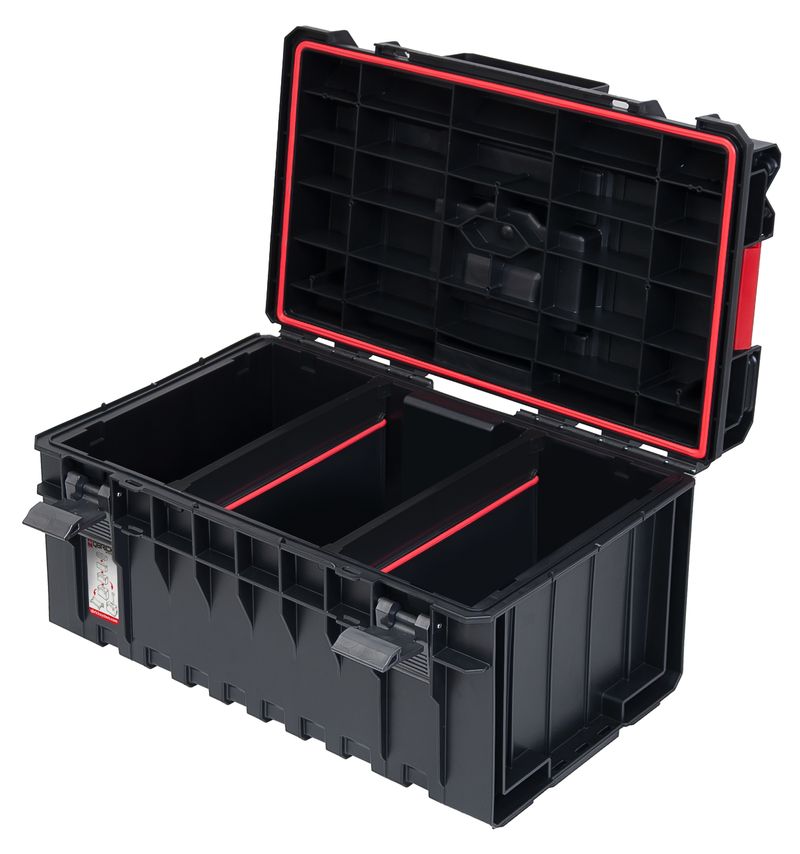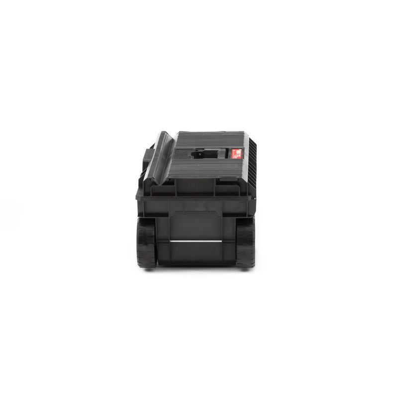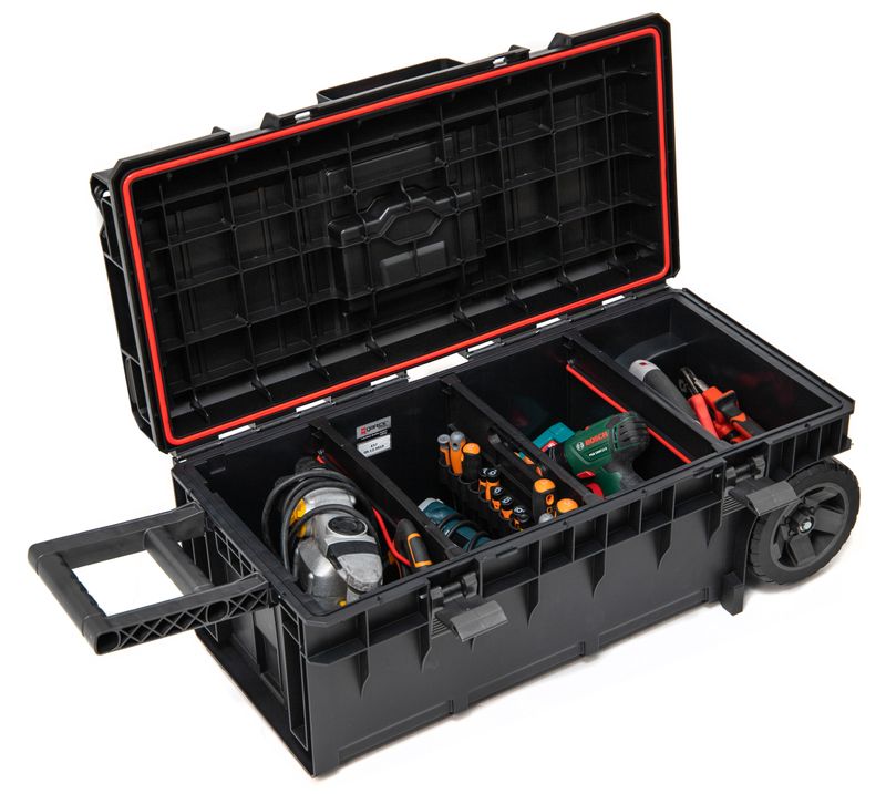 Mobilný box na náradie vám umožňuje prenášať dlhé nástroje ako kladivá, uhlové brúsky alebo miešačky na cementovanie spolu s potrebným príslušenstvom. Je vybavená tromi nastaviteľnými priehradkami - dve s elastickými popruhmi a jedna Multi priehradka, vďaka čomu je ľahké udržiavať poriadok vo vnútri boxu vďaka rôznym držiakom na ručné náradie. Odnímateľnú multi prepážku možno použiť ako samostatný nosič náradia. Nadštandardné rozmery z neho robia jedinečný produkt vo svojej kategórii.