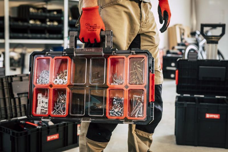 Modulárny organizér na menšie príslušenstvo. Polykarbonátové veko, polyamidové západky a pevná rukoväť zaisťujú bezpečnosť a pohodlie. Organizér má 9 nádob.