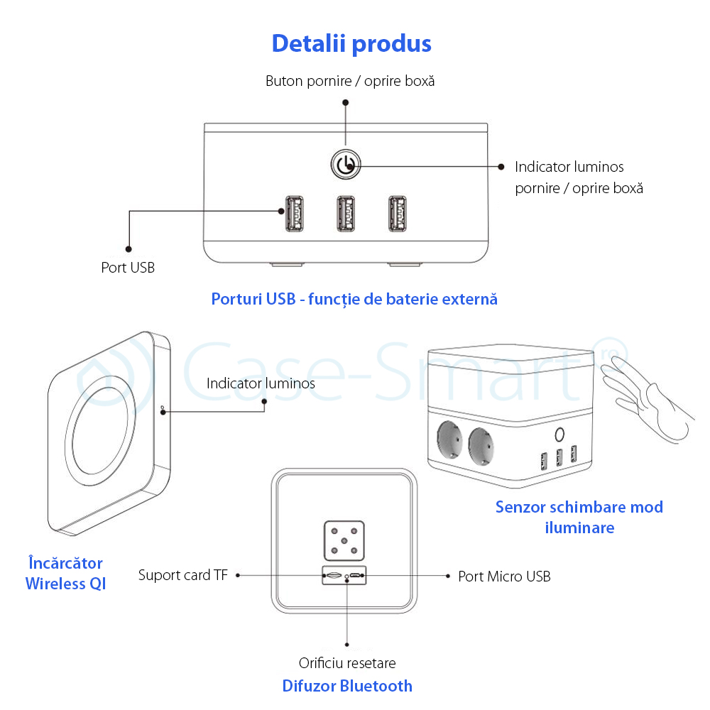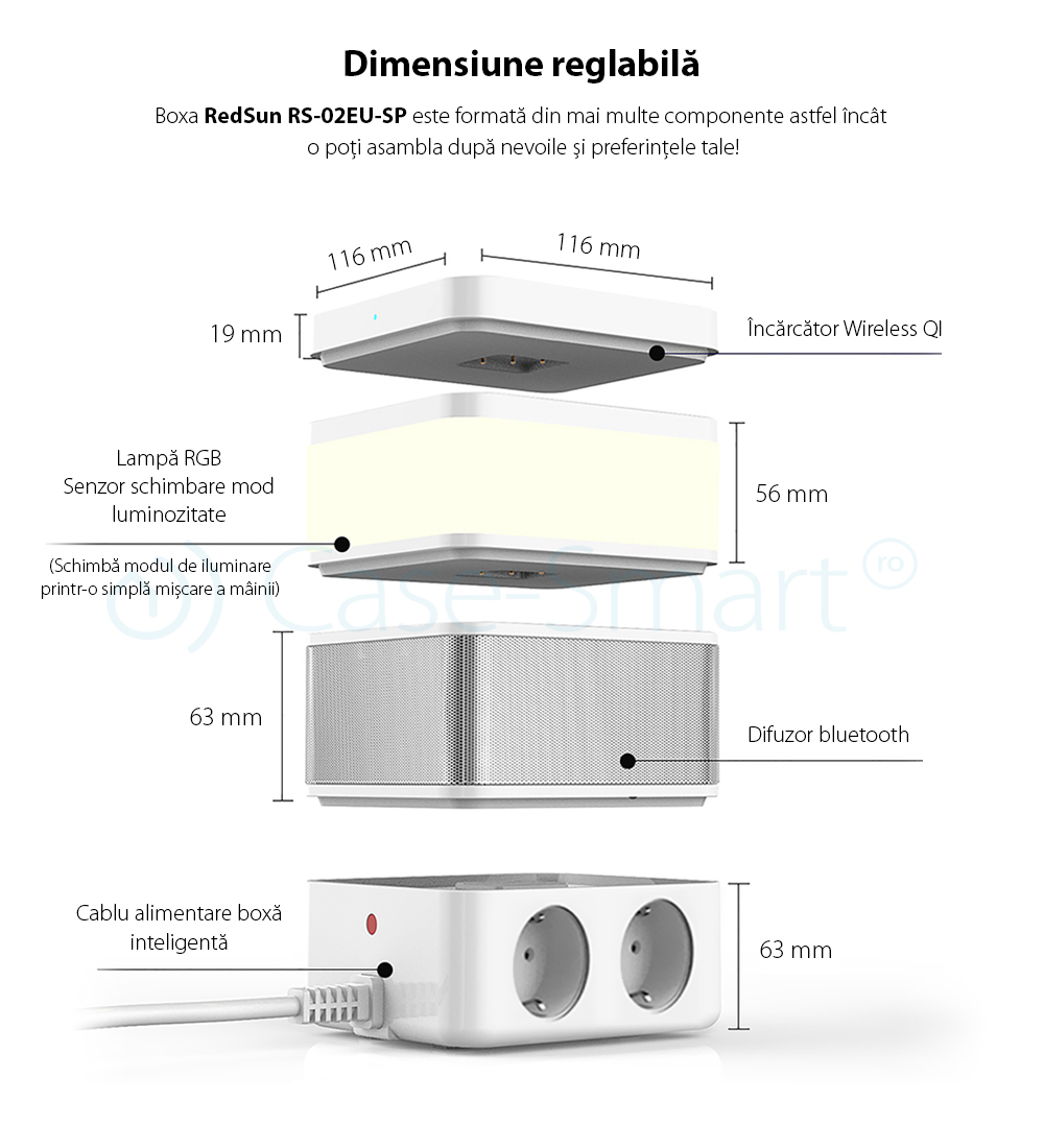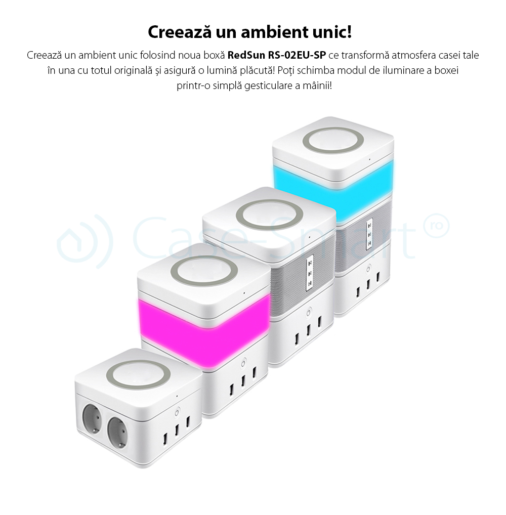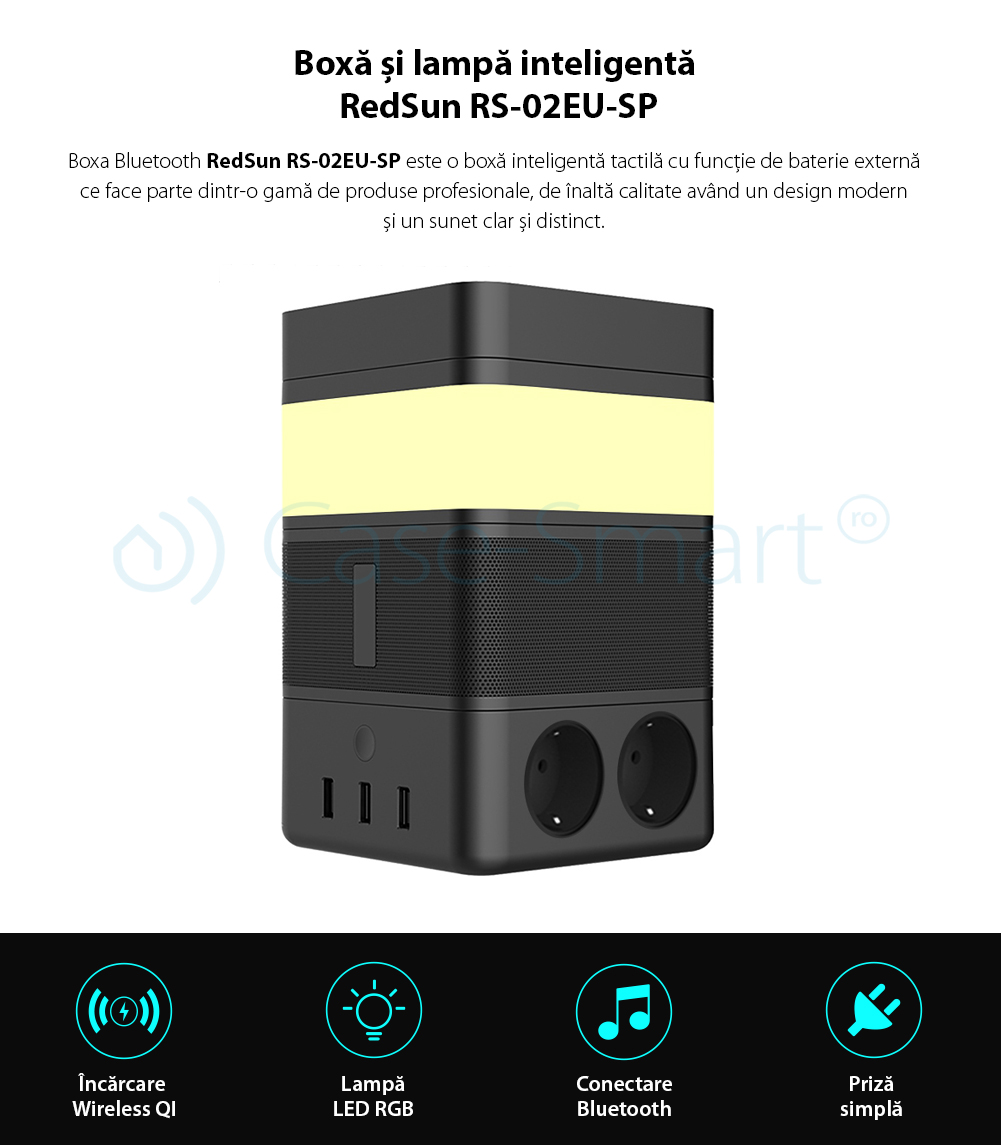 Boxa portabila cu lampa inteligenta Redsun RS-02EU-SP, Functie de baterie externa, Incarcator Wireless, Bluetooth SmartElectro IntelligentHouse