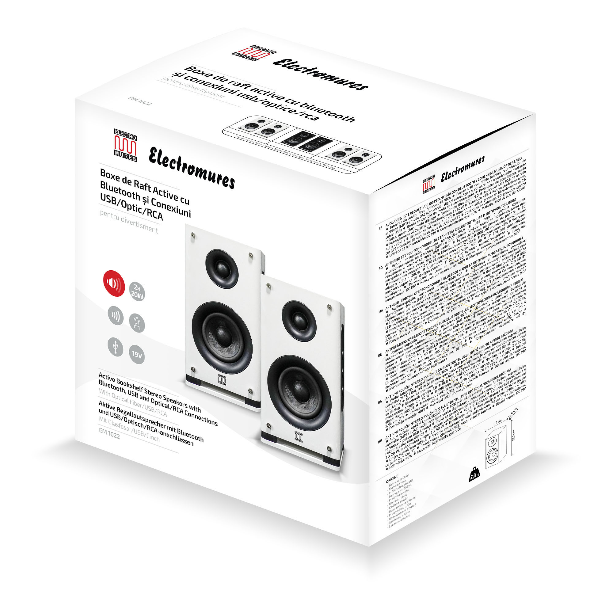 Boxe de raft active cu Bluetooth si conexiuni USB/OPTIC/RCA Electromures EM 1022, Culoare Alb ProDesign DailyAppliances