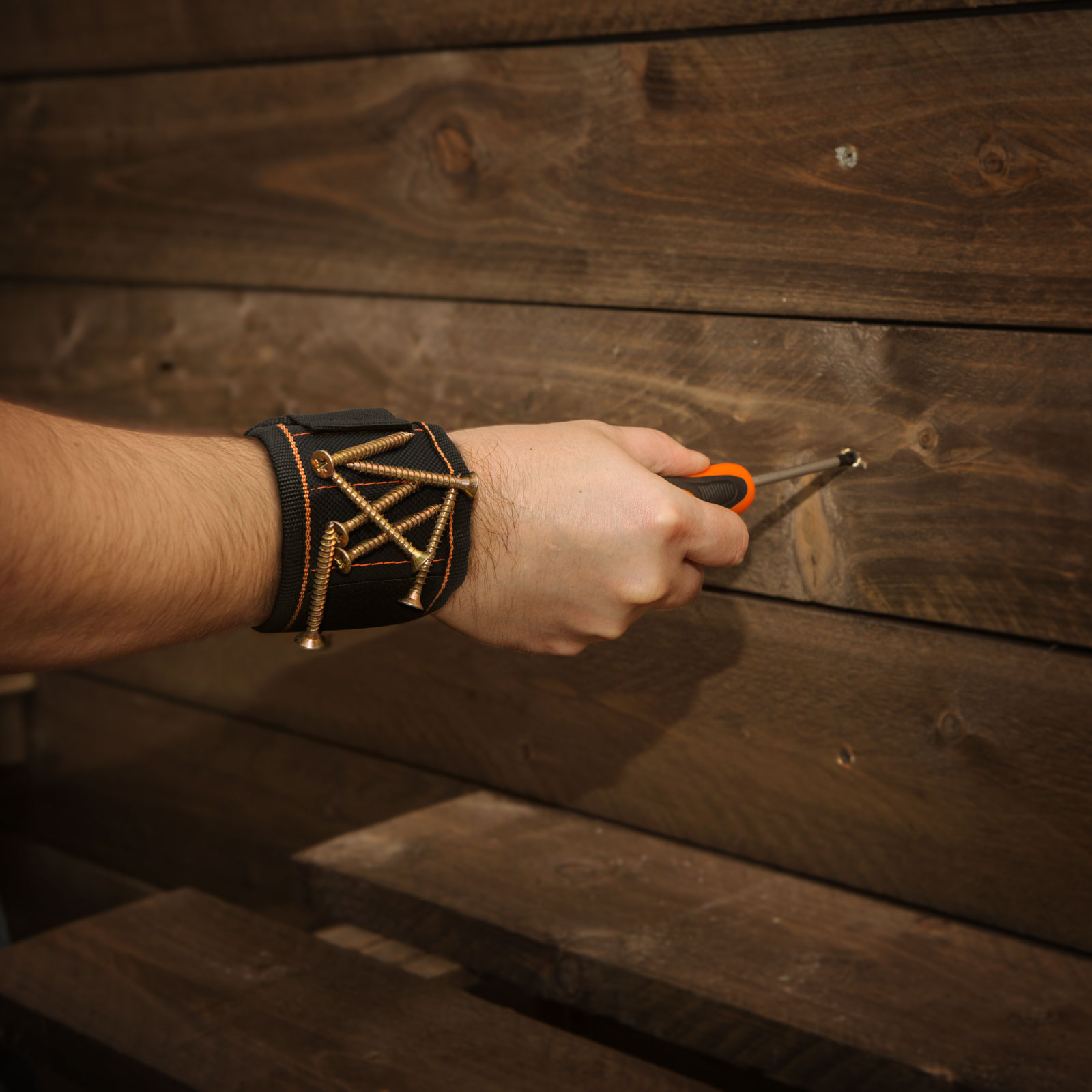Brăţara magnetică este un mare ajutor pentru depozitarea temporară a pieselor mici, cum ar fi şuruburi, cuie, şaibe, etc. necesare în cursul operaţiilor de montaj, iar mai ales în lucrul la înălţime, unde nu există posibilitatea de utilizare a cutiilor de depozitare.