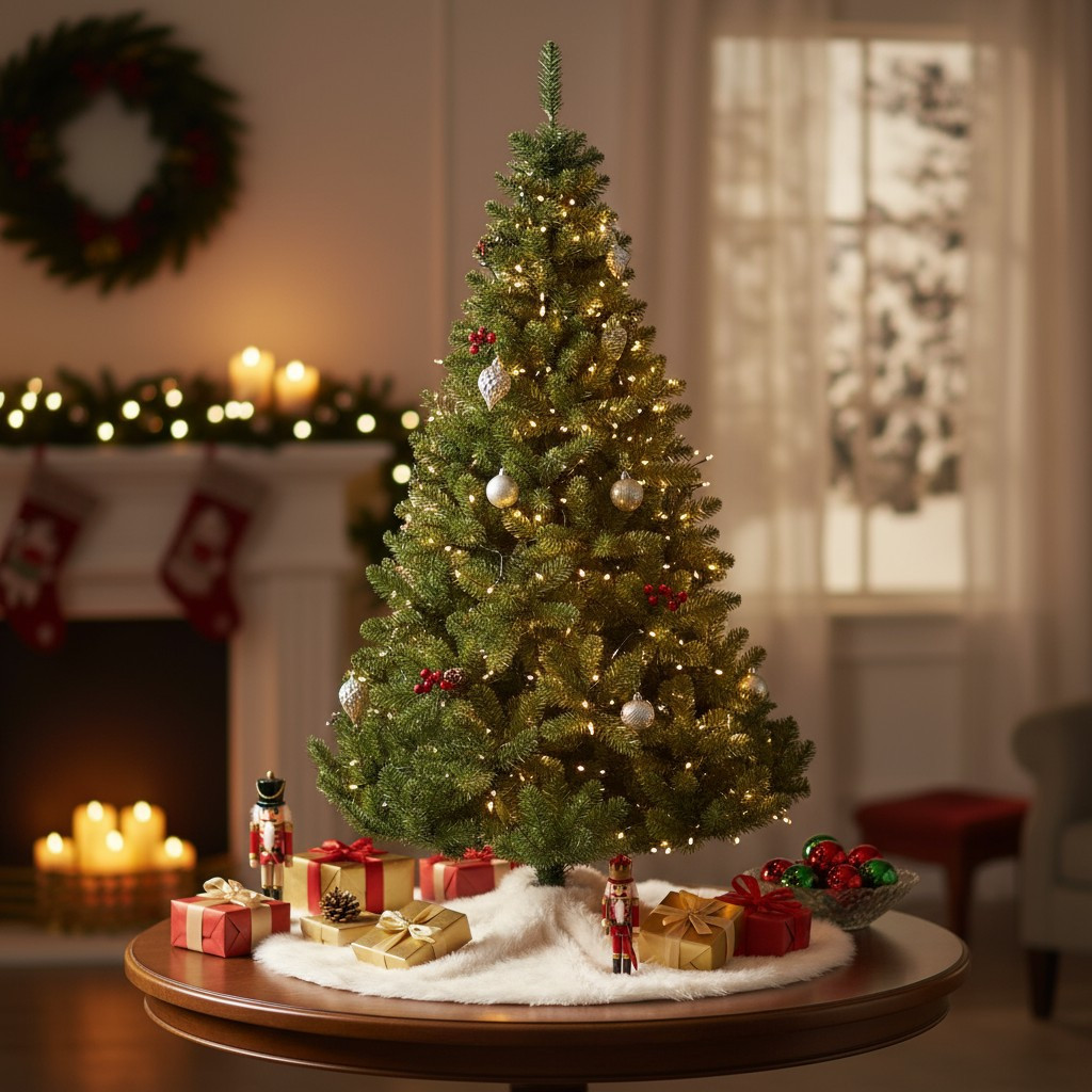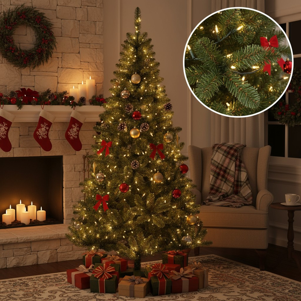 Utilizare: Se recomanda pentru interior. Asambleaza cele 3 segmente, fixeaza bradul in suportul inclus si aranjeaza ramurile pentru un volum uniform. Dupa sarbatori, demonteaza-l si depoziteaza-l in cutie, intr-un loc uscat.