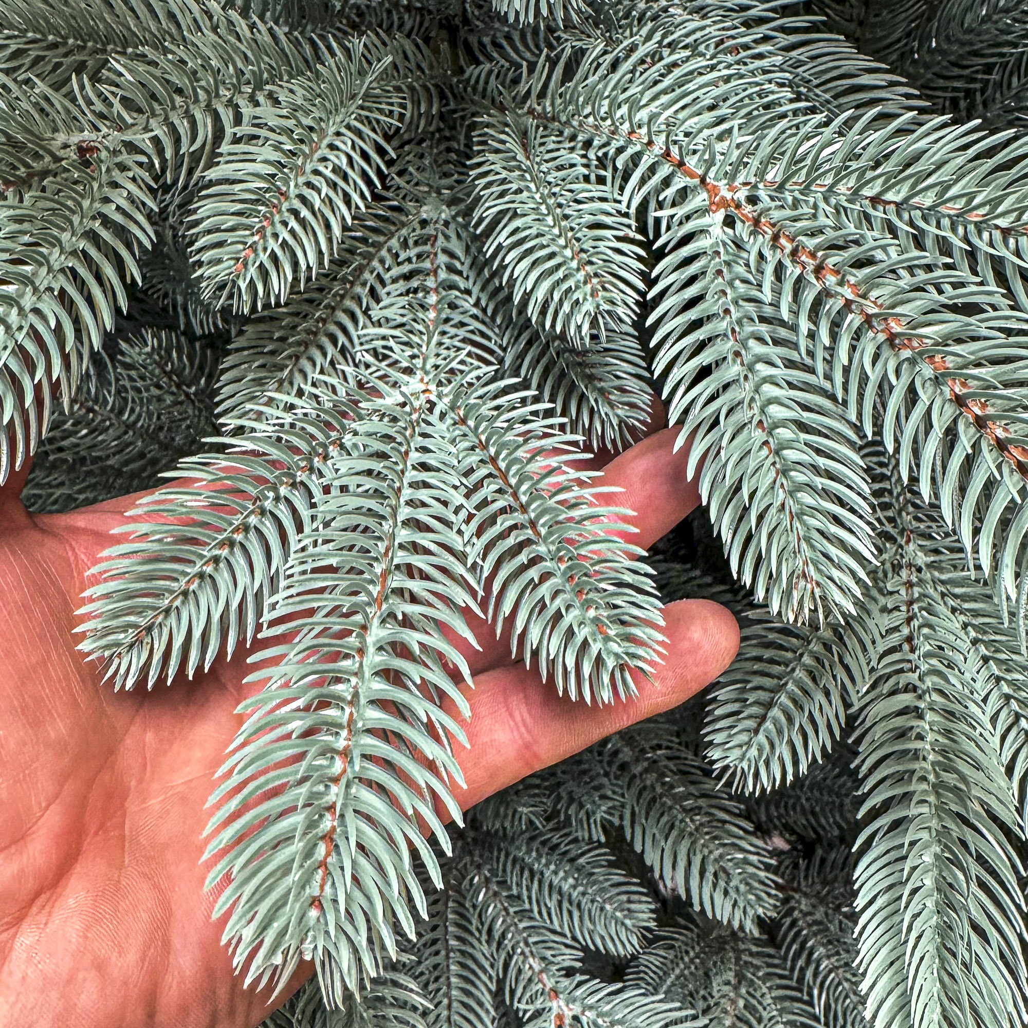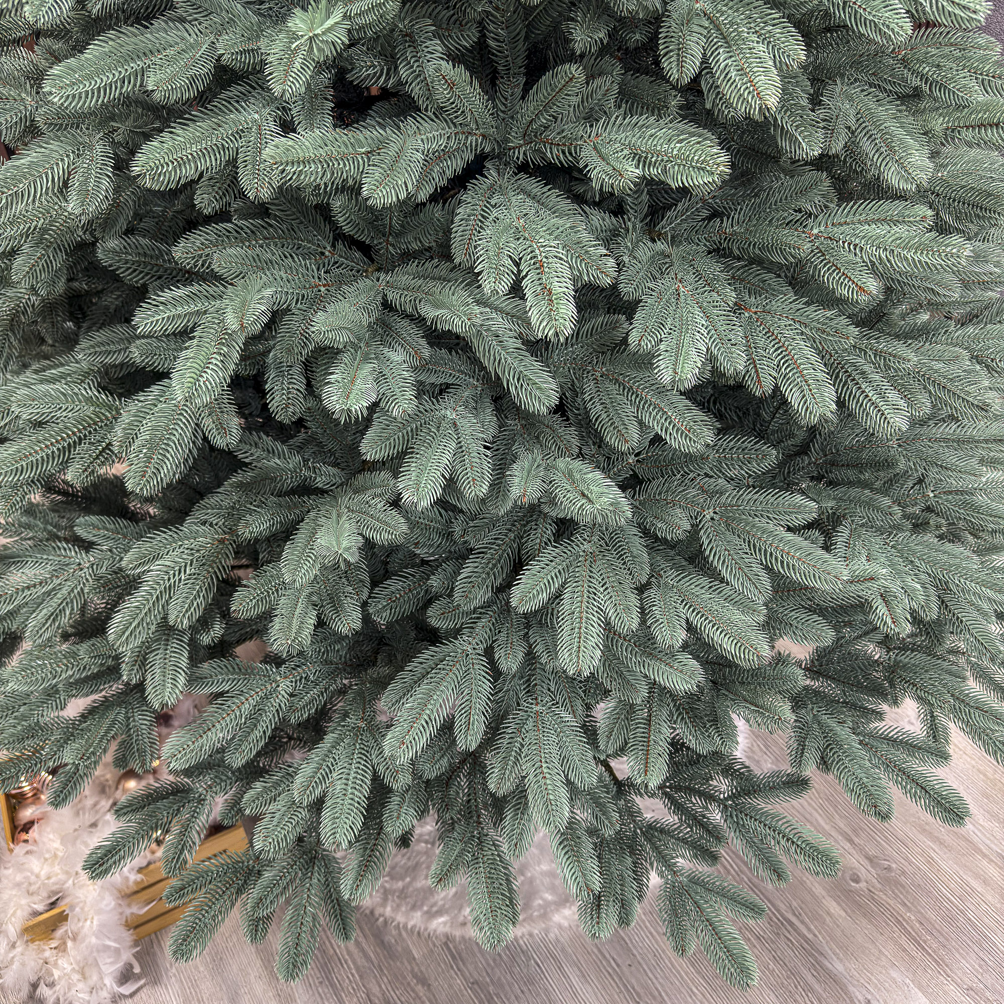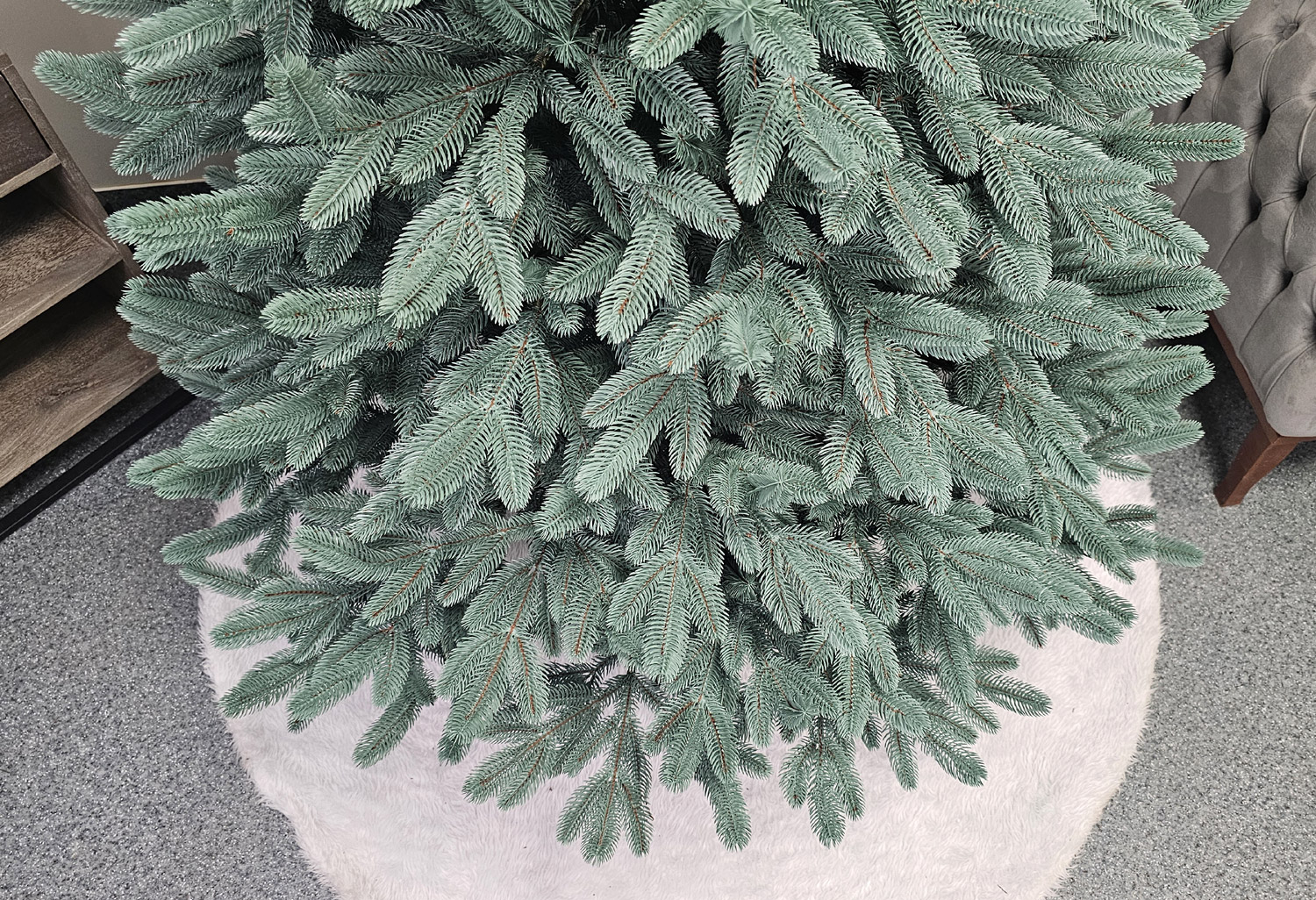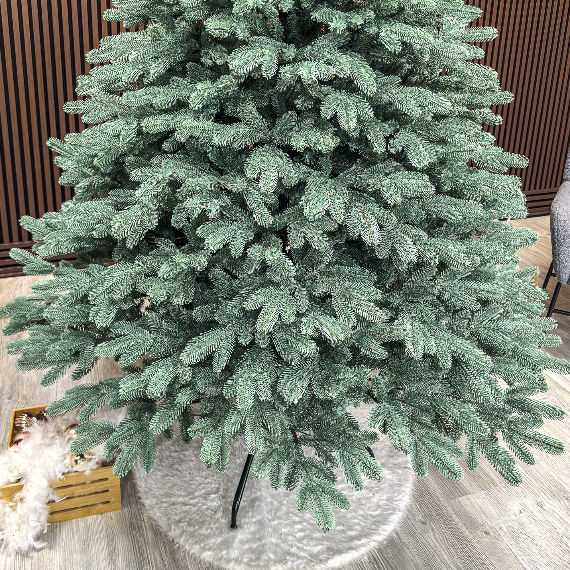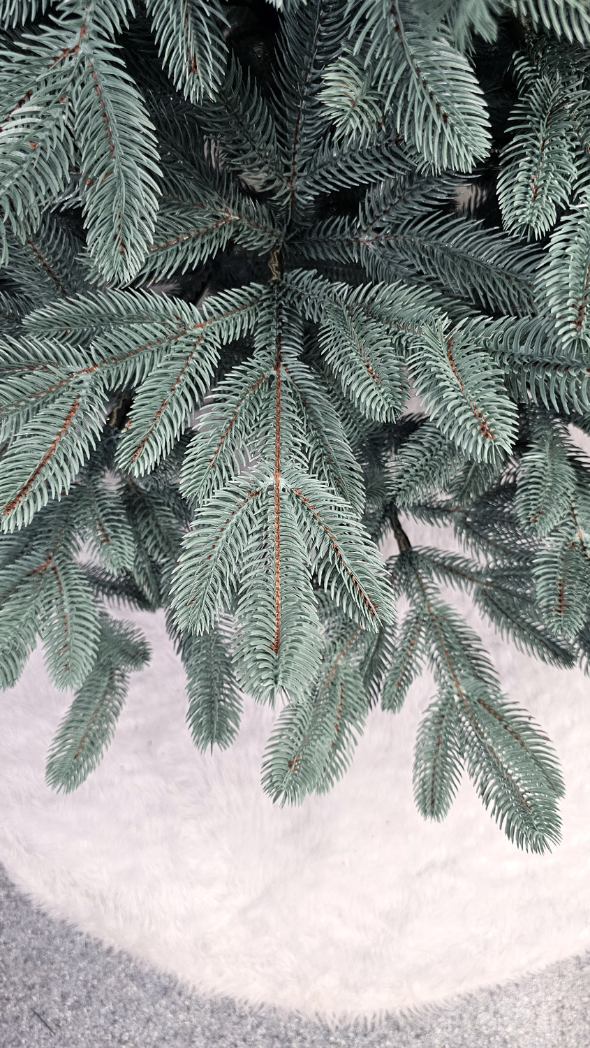 Datorita constructiei integrale din crengute 3D din PE, acest brad artificial argintiu are un aspect premium, cu ramuri dense si bine conturate, fara goluri inestetice. Suportul metalic inclus ofera stabilitate foarte buna, iar partea inferioara este conceputa astfel incat sa lase suficient loc pentru cadouri.