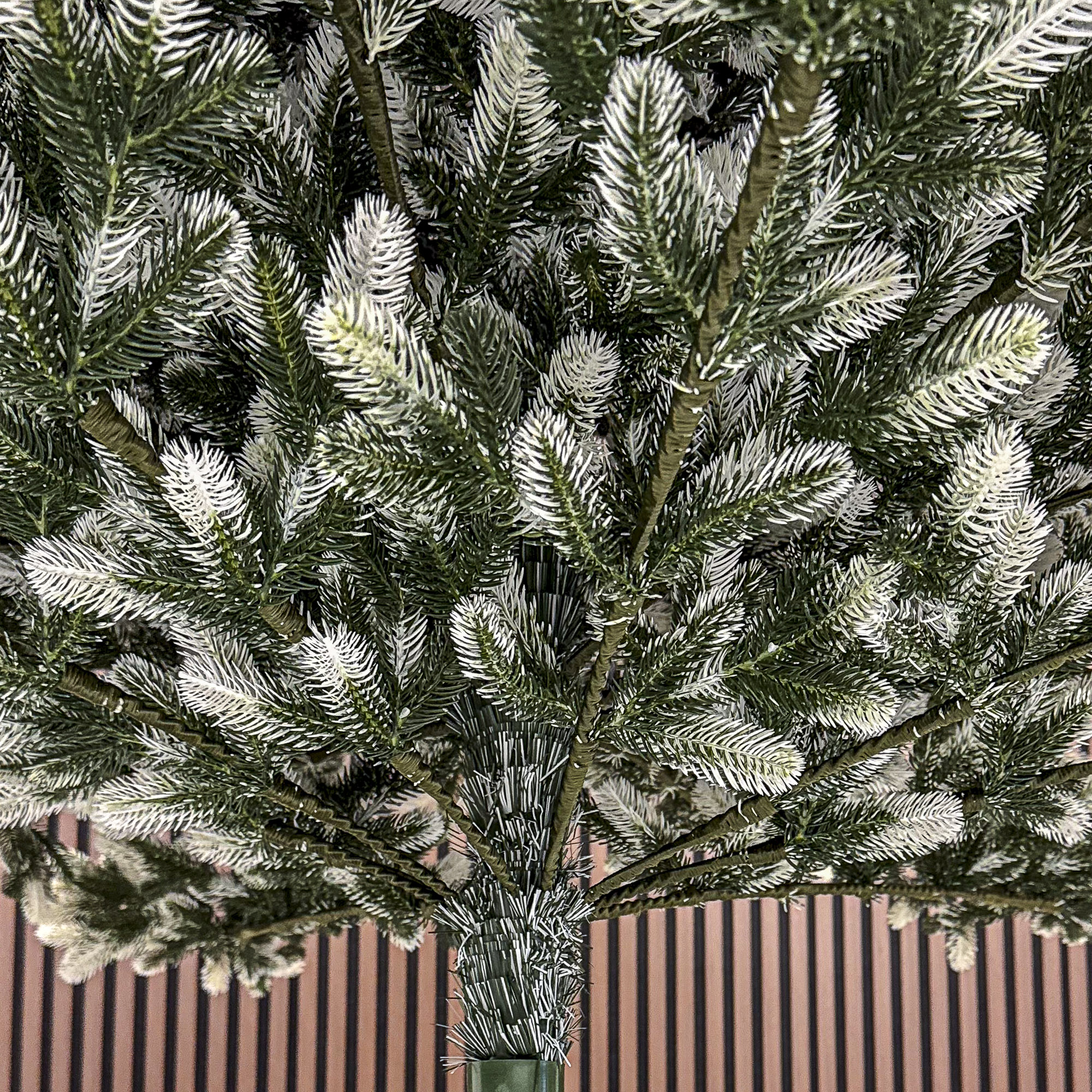 Imagine reala de prezentare pentru modelul Polar Winter Select, integral 3D, 250 cm PARAMETRII: – Inaltimea totala a bradului (dimensiune masurata de la podea pana in varf, cu tot cu suport): 250 cm – Diametrul (latimea la baza in cel mai lat punct): 155 cm – Numarul total al ramificatiilor: 1647 dintre care:– Crengute 2D, material PVC: -– Crengute 3D, material PE: 1647– Suport inclus: metal– Zapada: NU– Alte decoratiuni: varfuri albe– Greutate (fara ambalaj): 23.0 kg– Dimensiune ambalaj carton: 40 x 40 x 140cm BRAD DE CRACIUN UNIC PENTRU CRACIUN UNIC Ce poate fi mai fermecator decat atmosfera unica a Craciunului? Si probabil ca niciunul dintre noi nu se indoieste ca un brad splendid impodobit este cel mai important element care construieste aceasta atmosfera magica de Craciun. La urma urmei, ritualul anual al impodobirii in familie a bradului de Craciun este unul dintre cele mai de neuitat momente, evocand multe amintiri frumoase. Bradul de Craciun prezentat va reflecta atmosfera minunata a Craciunului intr-un mod unic, si in acelasi timp atat de cunoscut si de indragit, subliniindu-i caldura si atmosfera de familie. DESCOPERA AVANTAJELE POMULUI NOSTRU DE CRACIUN – manopera precisa, imbinand soliditatea cu eleganta– densitate mare de ramuri si ace– distributie uniforma a acelor pe toata ramura – fara goluri– spatiu liber sub etajul inferior pentru cadouri– posibilitate de modelare a crengutelor in mai multe moduri– varietatea si realismul capetelor de crenguta– culoarea acelor imitand perfect acele naturale– diferentierea ramurilor – in functie de nivelul de inaltime– grosimea si durabilitatea firelor– fiabilitatea intregii structuri – arborele este aproape imposibil de distins de brazii naturali Cu bradul Christmas Deluxe by Sersimo® – un element inseparabil al Craciunului – veti petrece aceasta perioada magica de iarna intr-o aura de bucurie si caldura. Ganditi-va doar cat de frumos vor arata decoratiunile – stralucitoare, presarate cu sclipici, incalzind interiorul. Chiar si oamenii care nu impartasesc entuziasmul de Craciun recunosc ca un brad de Craciun impodobit frumos creeaza o atmosfera aparte. Cel mai mare avantaj al bradului nostru de Craciun este numarul mare de ramuri dens aranjate. Datorita densitatii si elegantei sale captivante, nu necesita prezenta a numeroase decoratiuni, fiind cu adevarat un decor grozav al oricarui interior! Etajul cel mai de jos al pomului de Craciun este la inaltimea potrivita, astfel incat sa puteti pune cu usurinta cadourile de Craciun sub el.Crengile pot fi indoite cu usurinta in diferite directii pentru a modela diferitele ramuri ale pomului si a le da forme diferite. Crengutele individuale au finaluri realiste si variate, iar niciuna nu este taiata intr-un mod artificial si inestetic. Culoarea lor intr-un mod extrem de realist imita culoarea reala a coniferelor si nu se estompeaza in timp. Sarma ascunsa cu grija nu se vede prin ace si, in acelasi timp, este suficient de groasa si rezistenta pentru ca bradul sa va serveasca ani de zile! Ace din folie PVC, puternice si durabile, sunt in acelasi timp extrem de placute la atingere. Deoarece bradul de Craciun – spre deosebire de copacii adevarati – nu ii pierde, nu va fi nevoie sa aspirati camera in mod regulat. Mai mult decat atat, acele sunt distribuite uniform pe toata lungimea ramurii, garantand astfel un efect vizual de densitate, fara goluri.
