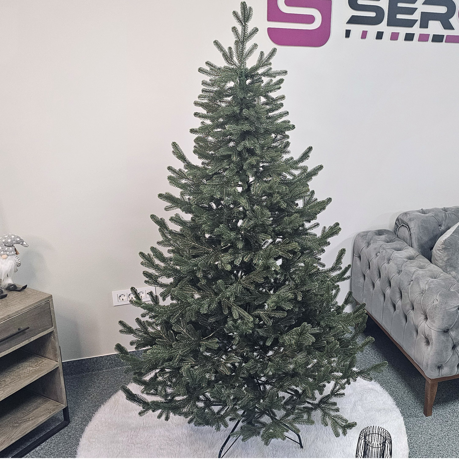 Imagine reala de prezentare pentru modelul Viena verde, varianta 180cm PARAMETRII: - Inaltimea totala a bradului (dimensiune masurata de la podea pana in varf, cu tot cu suport): 180cm - Diametrul (latimea la baza in cel mai lat punct): 124cm - Numarul total al ramificatiilor: 317 dintre care:- Crengute 2D, material PVC: -- Crengute 3D, material PE: 317- Suport inclus: metal- Zapada: NU- Alte decoratiuni: -- Greutate (fara ambalaj): 10.9kg- Dimensiune ambalaj carton: 32 x 29 x 98cm BRAD DE CRACIUN UNIC PENTRU CRACIUN UNIC Ce poate fi mai fermecator decat atmosfera unica a Craciunului? Si probabil ca niciunul dintre noi nu se indoieste ca un brad splendid impodobit este cel mai important element care construieste aceasta atmosfera magica de Craciun. La urma urmei, ritualul anual al impodobirii in familie a bradului de Craciun este unul dintre cele mai de neuitat momente, evocand multe amintiri frumoase. Bradul de Craciun prezentat va reflecta atmosfera minunata a Craciunului intr-un mod unic, si in acelasi timp atat de cunoscut si de indragit, subliniindu-i caldura si atmosfera de familie. DESCOPERA AVANTAJELE POMULUI NOSTRU DE CRACIUN – manopera precisa, imbinand soliditatea cu eleganta– densitate mare de ramuri si ace– distributie uniforma a acelor pe toata ramura – fara goluri– spatiu liber sub etajul inferior pentru cadouri– posibilitate de modelare a crengutelor in mai multe moduri– varietatea si realismul capetelor de crenguta– culoarea acelor imitand perfect acele naturale– diferentierea ramurilor – in functie de nivelul de inaltime– grosimea si durabilitatea firelor– fiabilitatea intregii structuri – arborele este aproape imposibil de distins de brazii naturali Cu bradul Christmas Deluxe by Sersimo® – un element inseparabil al Craciunului – veti petrece aceasta perioada magica de iarna intr-o aura de bucurie si caldura. Ganditi-va doar cat de frumos vor arata decoratiunile – stralucitoare, presarate cu sclipici, incalzind interiorul. Chiar si oamenii care nu impartasesc entuziasmul de Craciun recunosc ca un brad de Craciun impodobit frumos creeaza o atmosfera aparte. Cel mai mare avantaj al bradului nostru de Craciun este numarul mare de ramuri dens aranjate. Datorita densitatii si elegantei sale captivante, nu necesita prezenta a numeroase decoratiuni, fiind cu adevarat un decor grozav al oricarui interior! Etajul cel mai de jos al pomului de Craciun este la inaltimea potrivita, astfel incat sa puteti pune cu usurinta cadourile de Craciun sub el.Crengile pot fi indoite cu usurinta in diferite directii pentru a modela diferitele ramuri ale pomului si a le da forme diferite. Crengutele individuale au finaluri realiste si variate, iar niciuna nu este taiata intr-un mod artificial si inestetic. Culoarea lor intr-un mod extrem de realist imita culoarea reala a coniferelor si nu se estompeaza in timp. Sarma ascunsa cu grija nu se vede prin ace si, in acelasi timp, este suficient de groasa si rezistenta pentru ca bradul sa va serveasca ani de zile! Ace din folie PVC, puternice si durabile, sunt in acelasi timp extrem de placute la atingere. Deoarece bradul de Craciun – spre deosebire de copacii adevarati – nu ii pierde, nu va fi nevoie sa aspirati camera in mod regulat. Mai mult decat atat, acele sunt distribuite uniform pe toata lungimea ramurii, garantand astfel un efect vizual de densitate, fara goluri.https://youtube.com/shorts/xcceRtwxOxw?feature=share Design exclusiv realizat de SERSIMO, fabricat in Ucraina