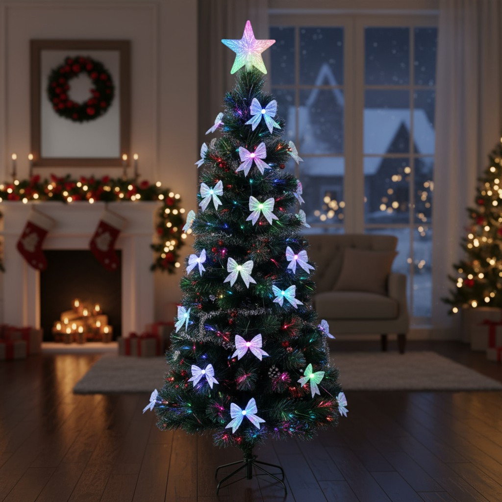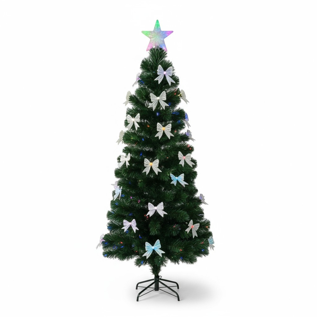 Brad artificial cu fibra optica si fundite, 180 cm, stea, lumini multicolor, suport metalic MultiMark GlobalProd