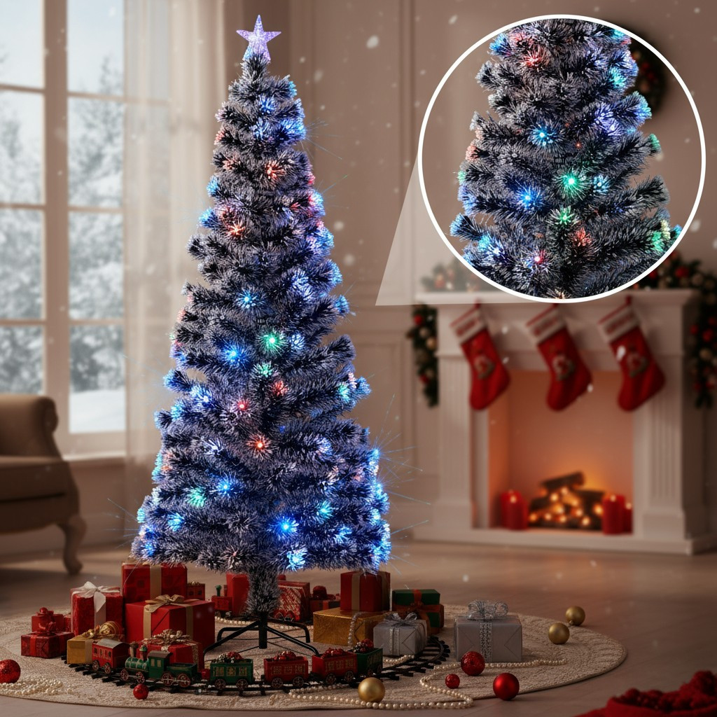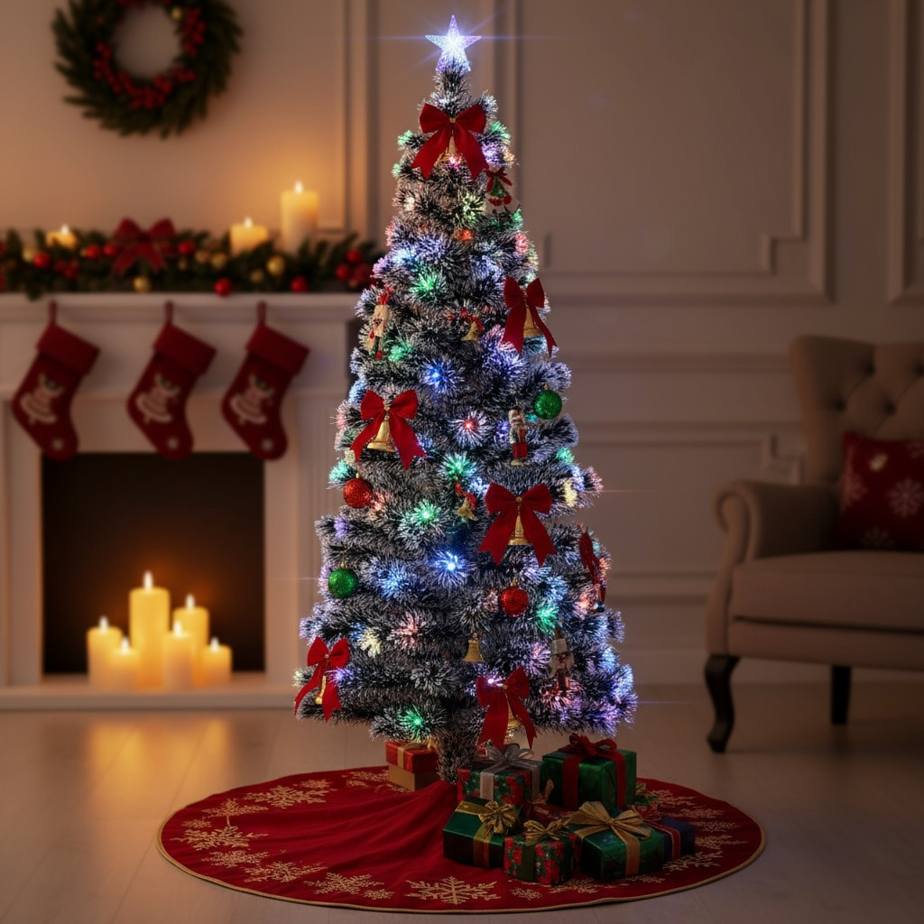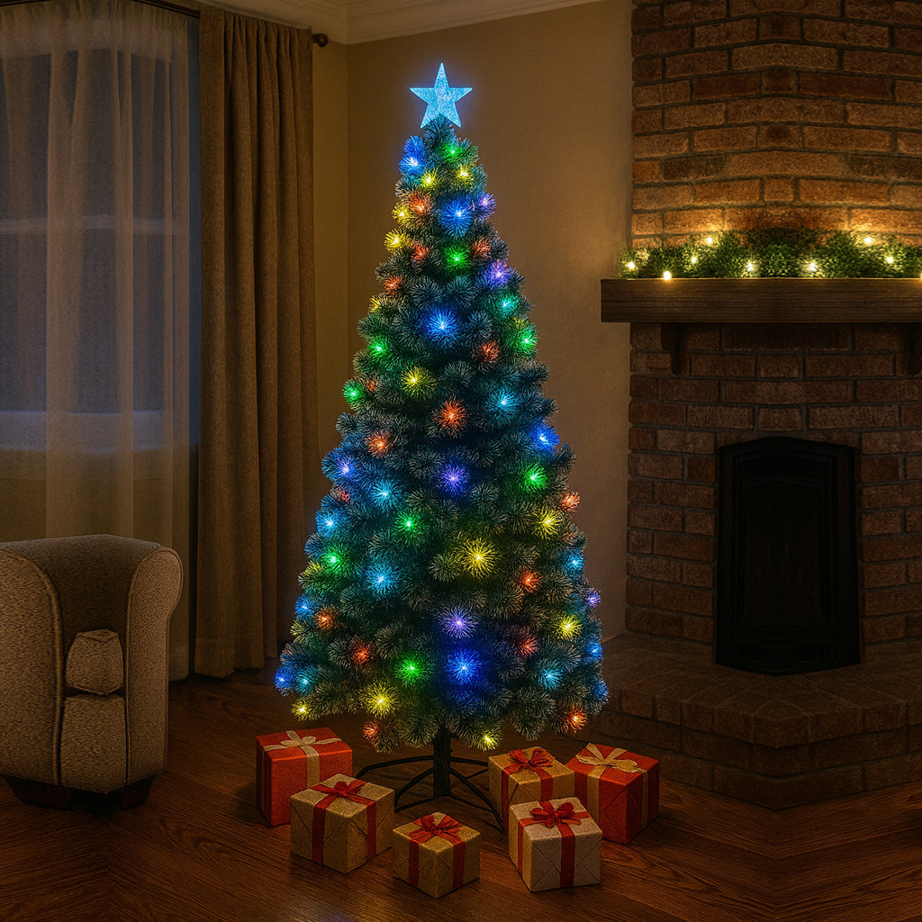 - Lumini multicolore integrate (LED + fibră optică) pentru o atmosferă festivă instant.
