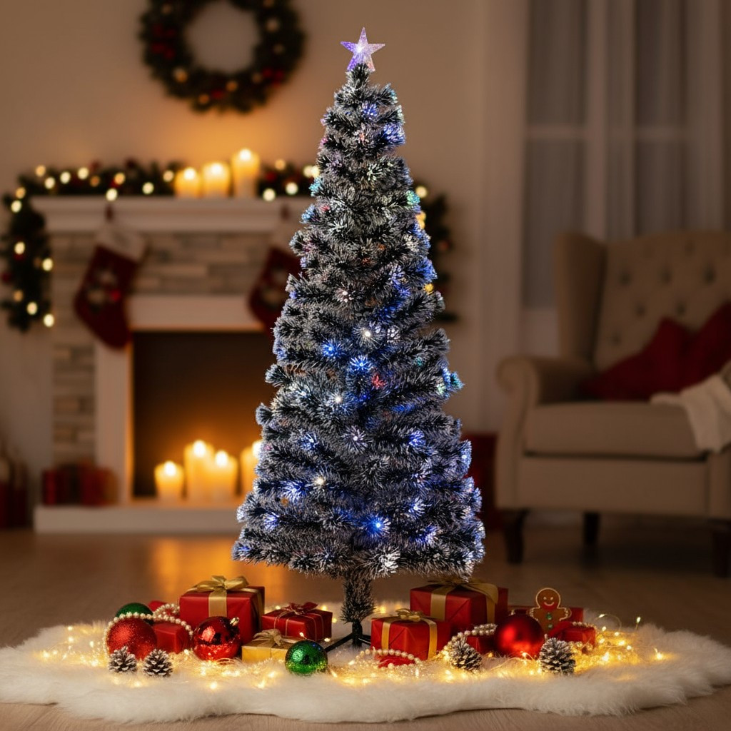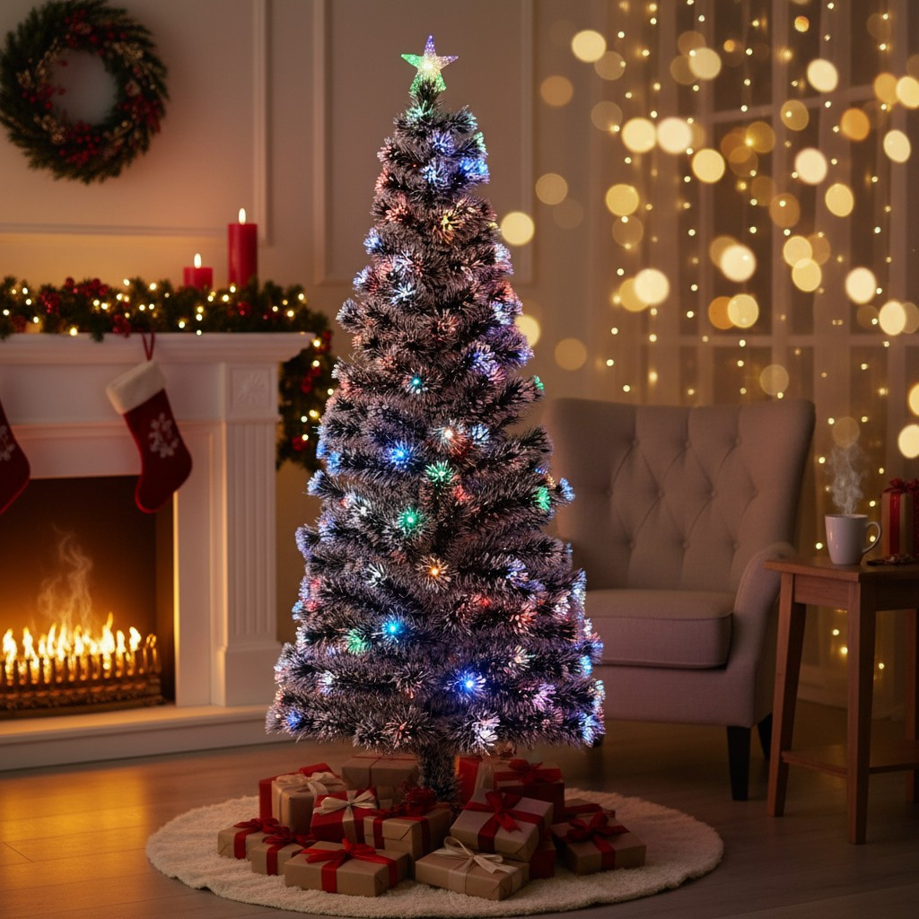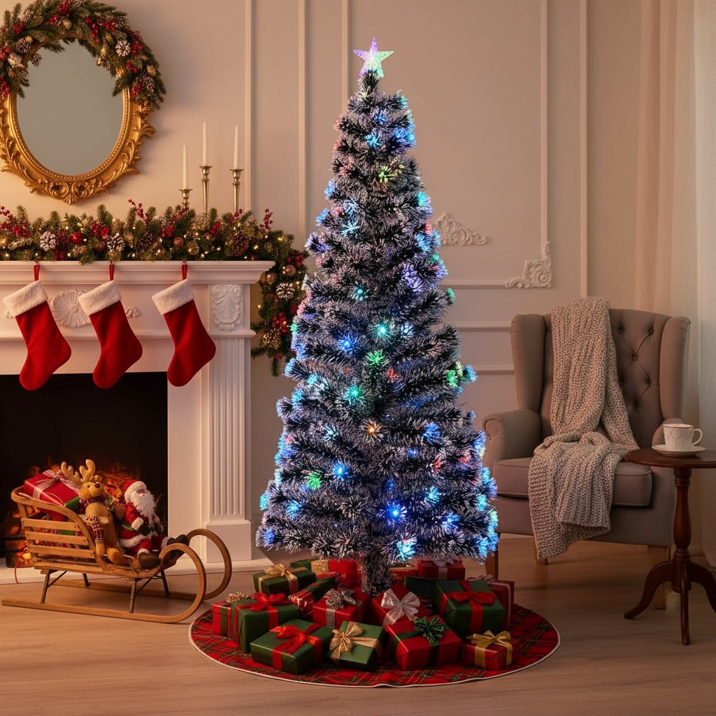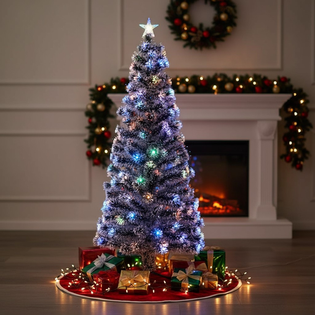 - Lumini multicolore integrate (LED + fibră optică) pentru o atmosferă festivă instant.