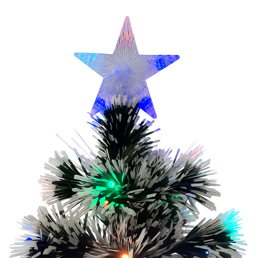 Brad artificial de Craciun 210 cm cu LED si fibra optica, cu steluta luminoasa
