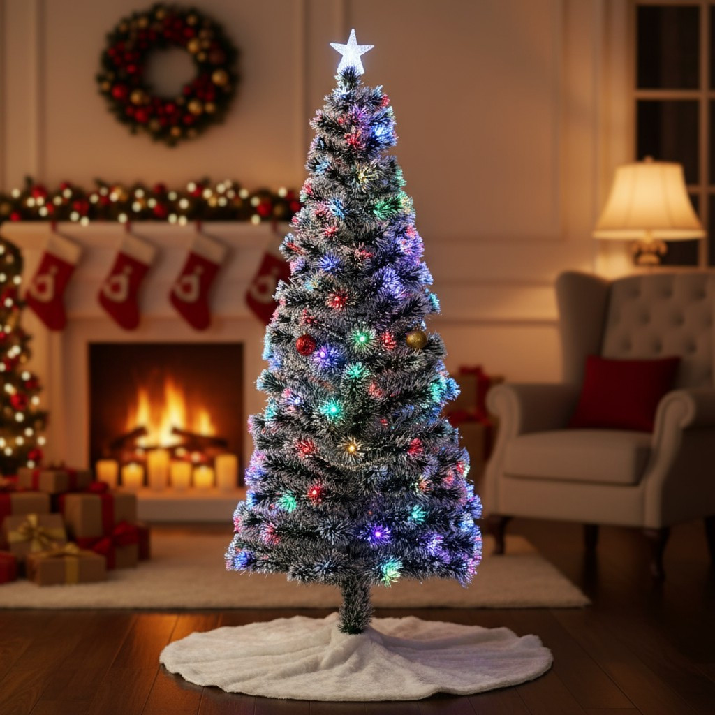Transforma rapid orice incapere intr-un decor de sarbatoare cu acest brad artificial de Craciun 210 cm, cu iluminare LED si fibra optica multicolora. Are ramuri dense cu aspect natural, iar steluta luminoasa din varf ofera un finisaj festiv care atrage privirile, fara sa mai ai nevoie de instalatii separate.