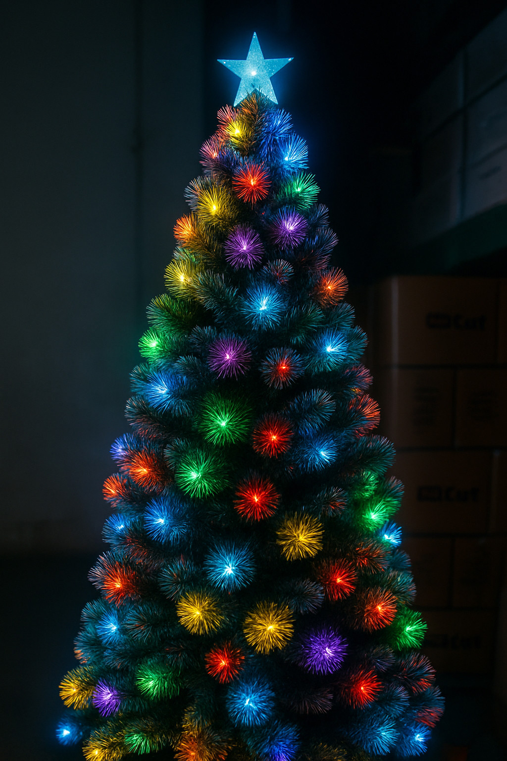 - Iluminare: LED + fibra optica multicolora