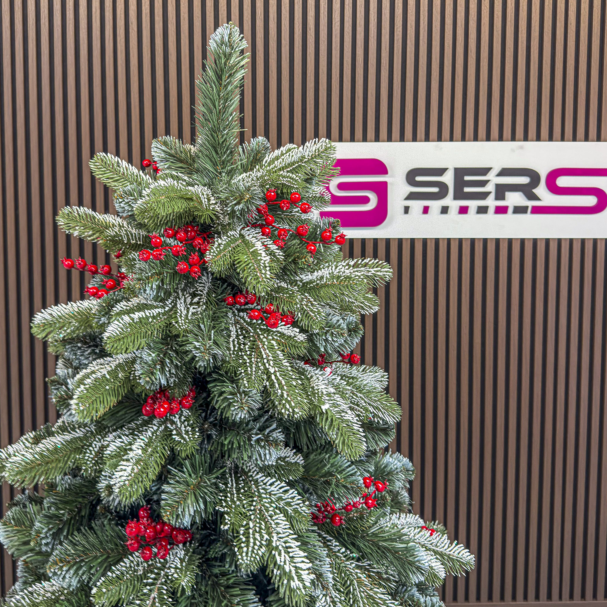 Adu magia sarbatorilor in casa cu acest brad artificial nins Sersimo Alexima Elite, creat pentru un decor elegant si realist. Cu o inaltime de 230 cm, ramuri dese mix 2D+3D si accente decorative cu merisoare rosii, acest brad artificial de Craciun ofera un aspect bogat, natural si festiv, perfect pentru living, birou sau spatii comerciale.
