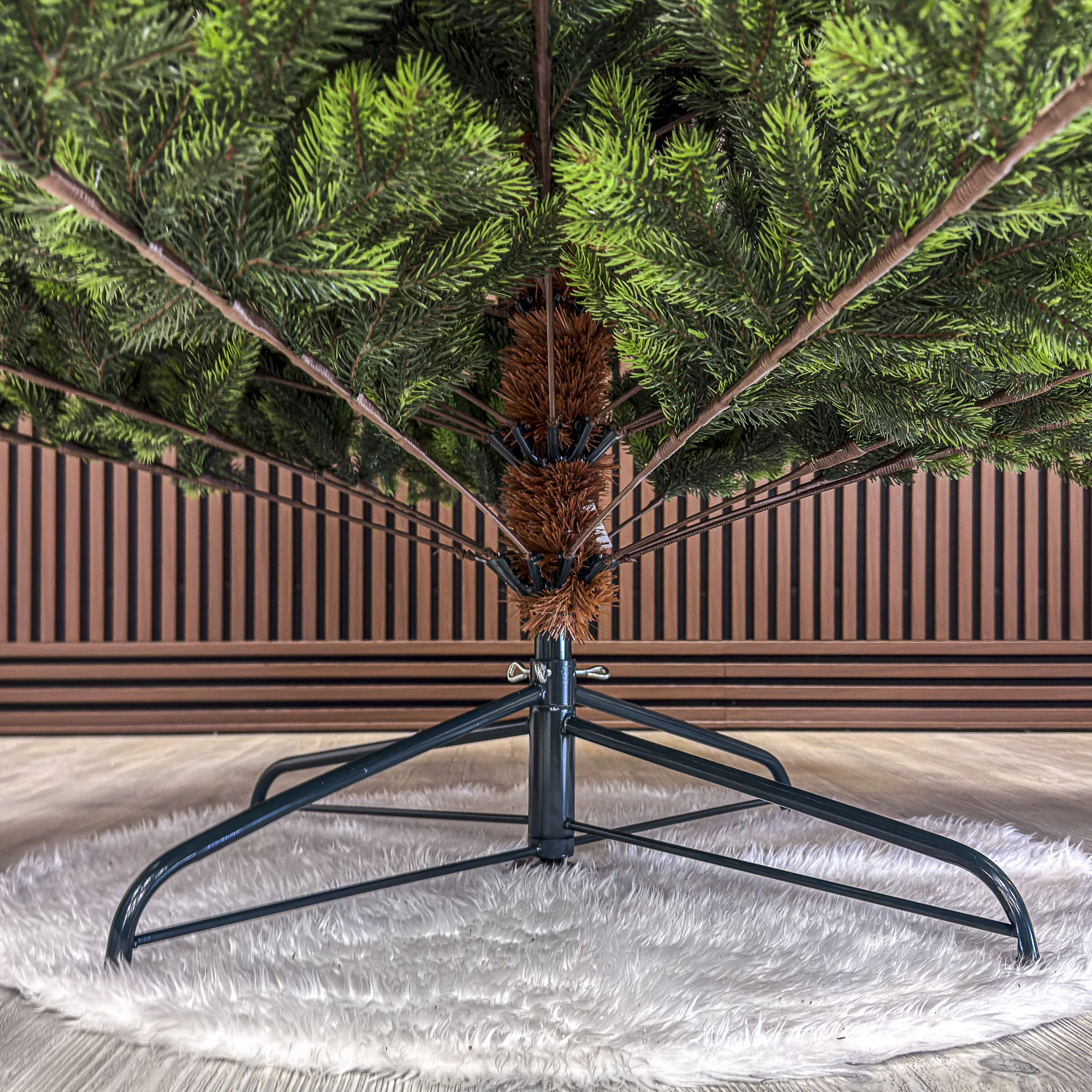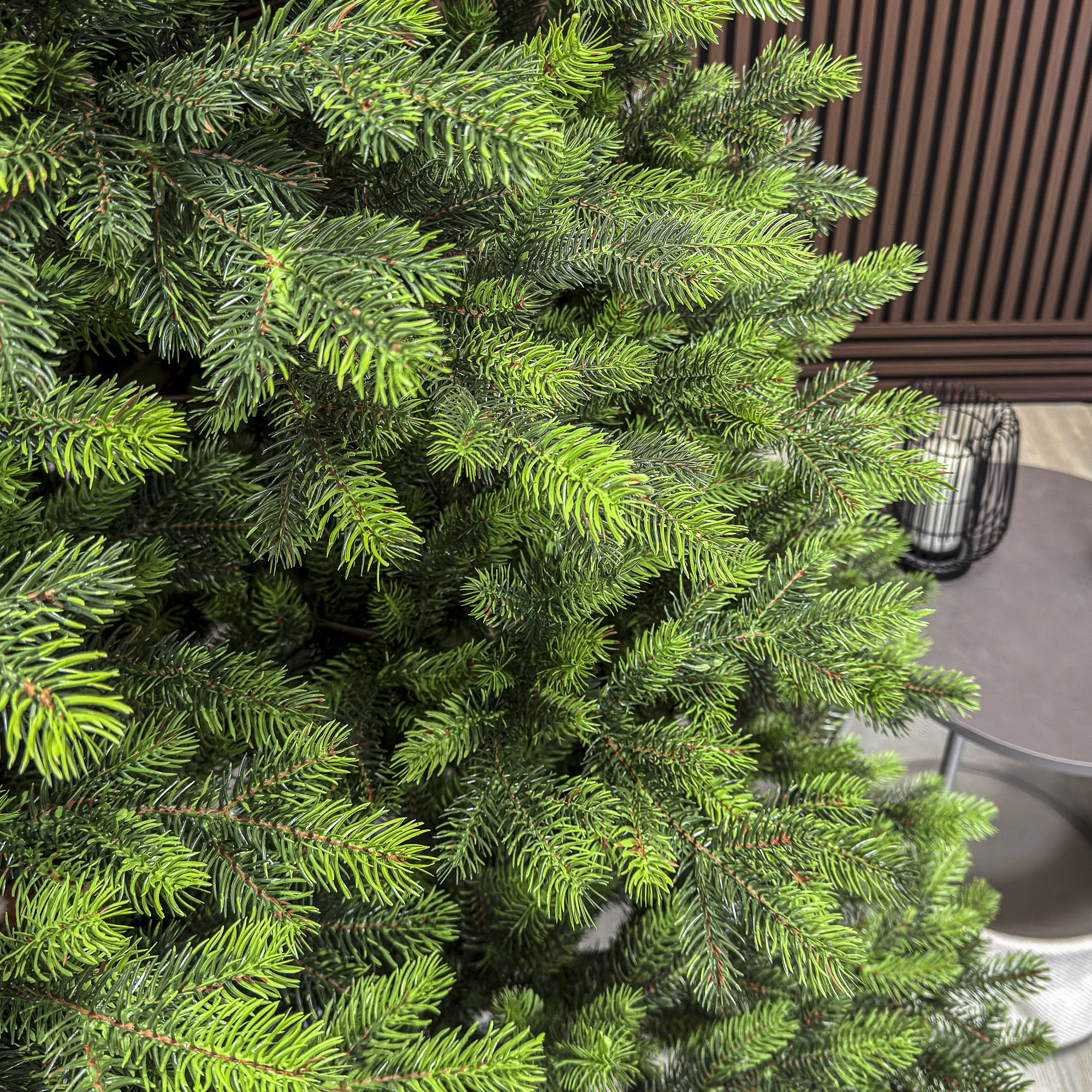 Imagine reala de prezentare pentru modelul Hollandia, verde cu varfuri verzi, integral 3D, 250 cm PARAMETRII: – Inaltimea totala a bradului (dimensiune masurata de la podea pana in varf, cu tot cu suport): 250 cm – Diametrul (latimea la baza in cel mai lat punct): 180 cm – Numarul total al ramificatiilor: 1583 dintre care:– Crengute 2D, material PVC: -– Crengute 3D, material PE: 1583– Suport inclus: metal– Zapada: NU– Alte decoratiuni: varfuri verde deschis– Greutate (fara ambalaj): 27 kg– Dimensiune ambalaj carton: -– Sistem instalare: balamale tip umbrela BRAD DE CRACIUN UNIC PENTRU CRACIUN UNIC Ce poate fi mai fermecator decat atmosfera unica a Craciunului? Si probabil ca niciunul dintre noi nu se indoieste ca un brad splendid impodobit este cel mai important element care construieste aceasta atmosfera magica de Craciun. La urma urmei, ritualul anual al impodobirii in familie a bradului de Craciun este unul dintre cele mai de neuitat momente, evocand multe amintiri frumoase. Bradul de Craciun prezentat va reflecta atmosfera minunata a Craciunului intr-un mod unic, si in acelasi timp atat de cunoscut si de indragit, subliniindu-i caldura si atmosfera de familie. DESCOPERA AVANTAJELE POMULUI NOSTRU DE CRACIUN – manopera precisa, imbinand soliditatea cu eleganta– densitate mare de ramuri si ace– distributie uniforma a acelor pe toata ramura – fara goluri– spatiu liber sub etajul inferior pentru cadouri– posibilitate de modelare a crengutelor in mai multe moduri– varietatea si realismul capetelor de crenguta– culoarea acelor imitand perfect acele naturale– diferentierea ramurilor – in functie de nivelul de inaltime– grosimea si durabilitatea firelor– fiabilitatea intregii structuri – arborele este aproape imposibil de distins de brazii naturali Cu bradul Christmas Deluxe by Sersimo® – un element inseparabil al Craciunului – veti petrece aceasta perioada magica de iarna intr-o aura de bucurie si caldura. Ganditi-va doar cat de frumos vor arata decoratiunile – stralucitoare, presarate cu sclipici, incalzind interiorul. Chiar si oamenii care nu impartasesc entuziasmul de Craciun recunosc ca un brad de Craciun impodobit frumos creeaza o atmosfera aparte. Cel mai mare avantaj al bradului nostru de Craciun este numarul mare de ramuri dens aranjate. Datorita densitatii si elegantei sale captivante, nu necesita prezenta a numeroase decoratiuni, fiind cu adevarat un decor grozav al oricarui interior! Etajul cel mai de jos al pomului de Craciun este la inaltimea potrivita, astfel incat sa puteti pune cu usurinta cadourile de Craciun sub el.Crengile pot fi indoite cu usurinta in diferite directii pentru a modela diferitele ramuri ale pomului si a le da forme diferite. Crengutele individuale au finaluri realiste si variate, iar niciuna nu este taiata intr-un mod artificial si inestetic. Culoarea lor intr-un mod extrem de realist imita culoarea reala a coniferelor si nu se estompeaza in timp. Sarma ascunsa cu grija nu se vede prin ace si, in acelasi timp, este suficient de groasa si rezistenta pentru ca bradul sa va serveasca ani de zile! Ace din folie PVC, puternice si durabile, sunt in acelasi timp extrem de placute la atingere. Deoarece bradul de Craciun – spre deosebire de copacii adevarati – nu ii pierde, nu va fi nevoie sa aspirati camera in mod regulat. Mai mult decat atat, acele sunt distribuite uniform pe toata lungimea ramurii, garantand astfel un efect vizual de densitate, fara goluri.