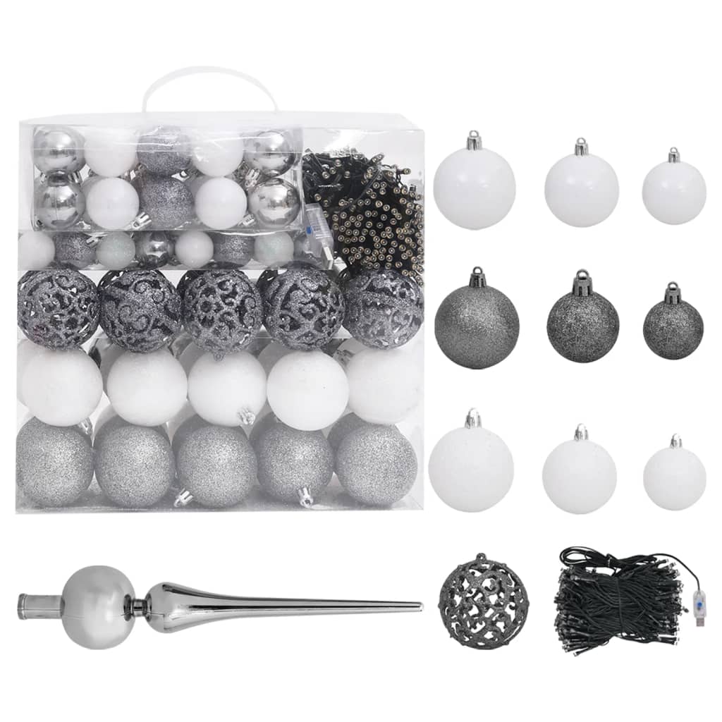- Culoare globuri: Alb strălucitor, alb lucios, gri strălucitor și gri lucios